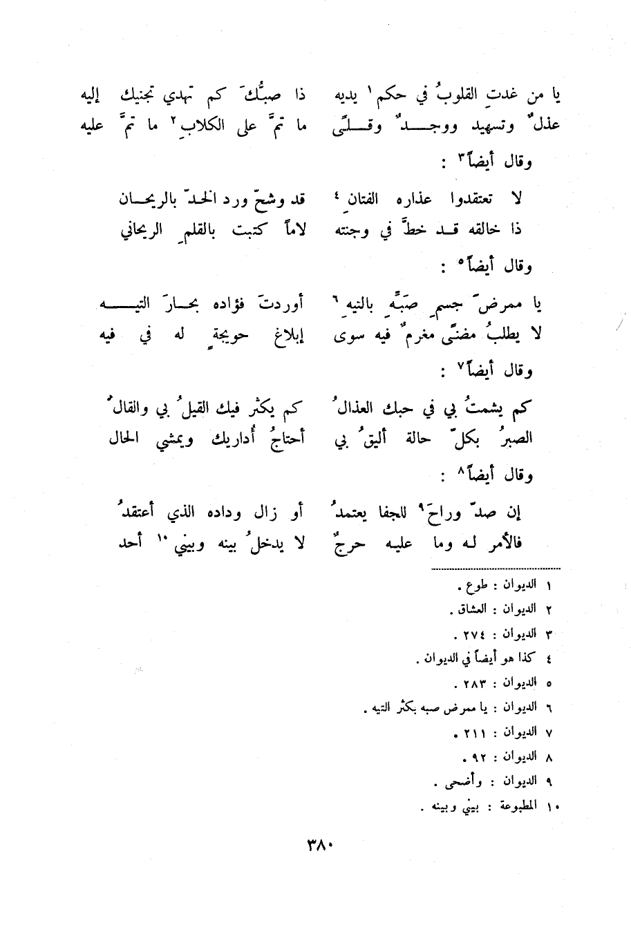 لا يطلب مضنى مغرم فيه سوى ... إبلاغ حويجة له في فيه وقال أيضاً (7) :