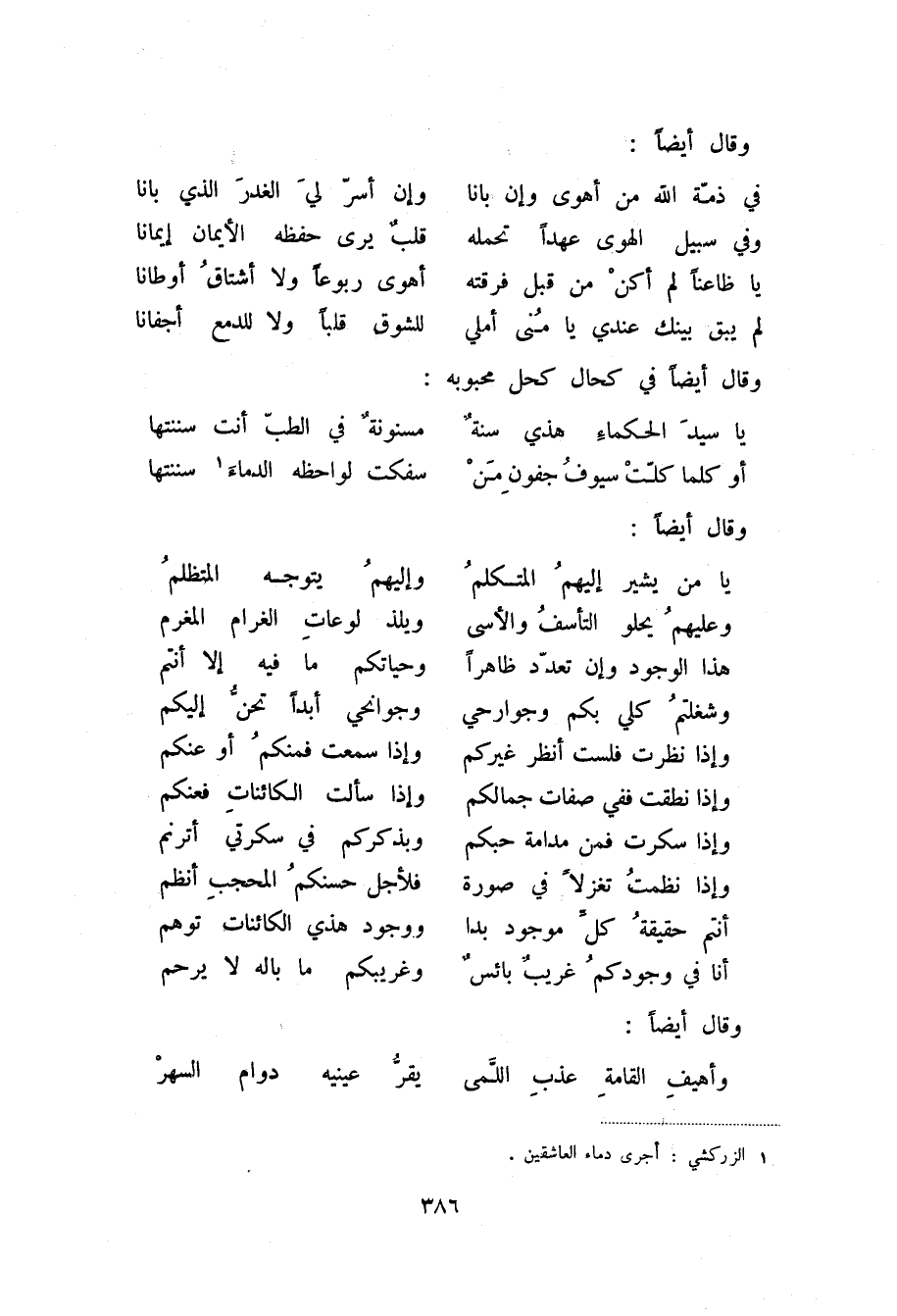 (1) الزركشي: أجرى دماء العاشقين.