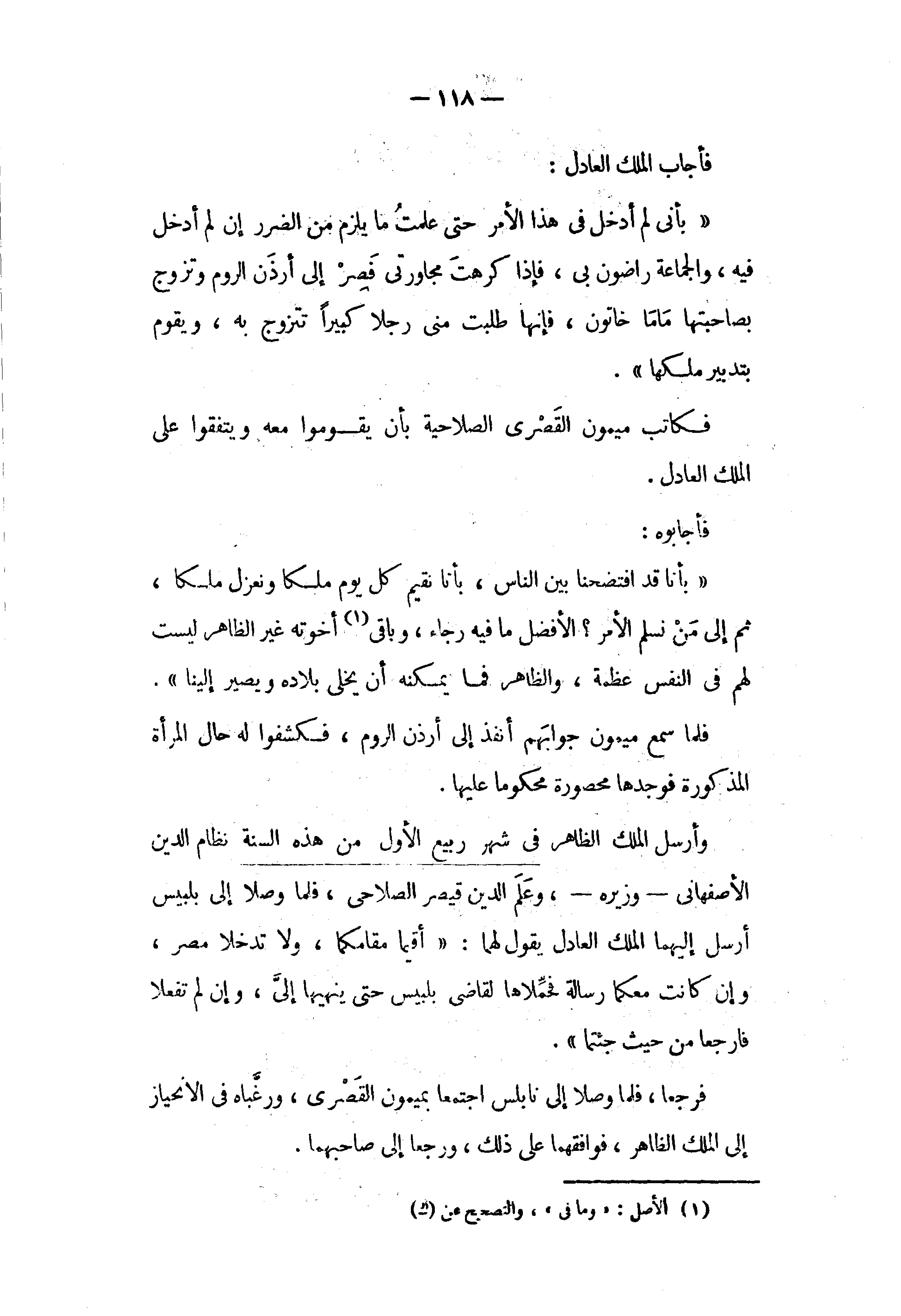 «بأنى لم أدخل في هذا الأمر حتى علمت ما يلزم من الضرر إن لم أدخل فيه، والجماعة راضون بى، فإذا كرهت مجاورتى فصر إلى أرذن الروم وتزوج بصاحبتها ماما خاتون، فإنها طلبت منى رجلا كبيرا تتزوج به، ويقوم بتدبير ملكها».