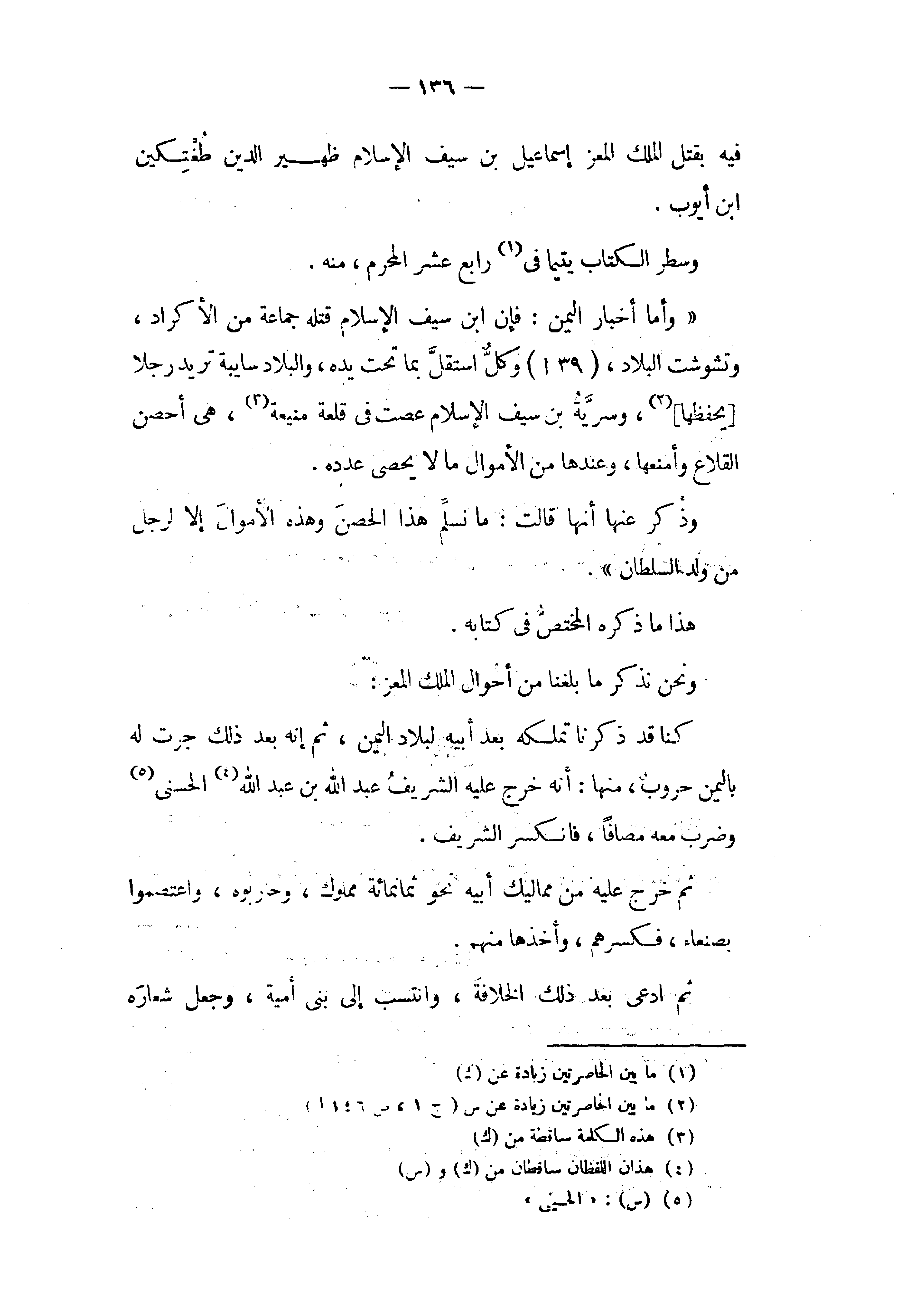 ونحن نذكر ما بلغنا من أحوال الملك المعز: