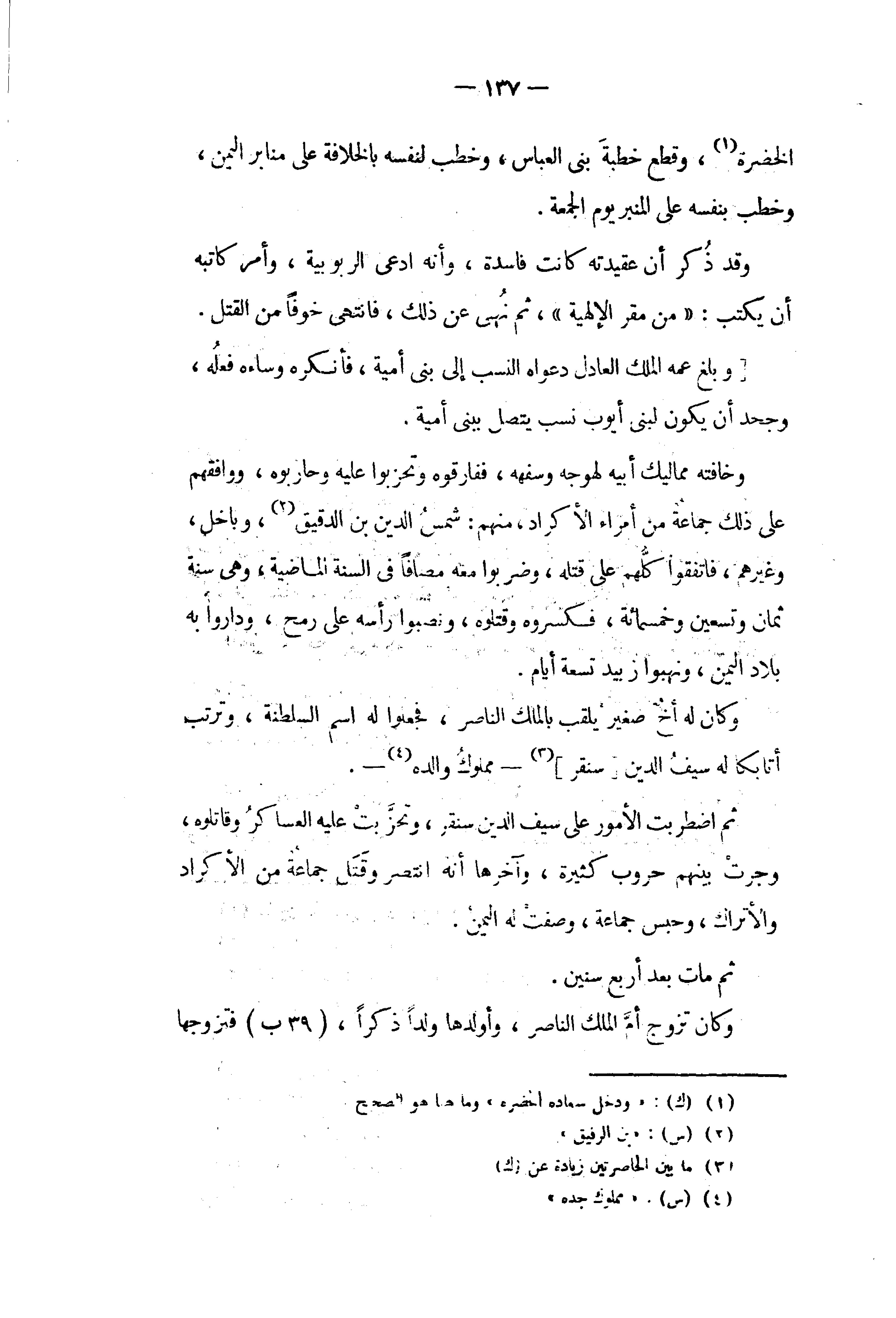 وكان تزوج أمّ الملك الناصر، وأولدها ولدا ذكرا، (39 ب) فتزوجها