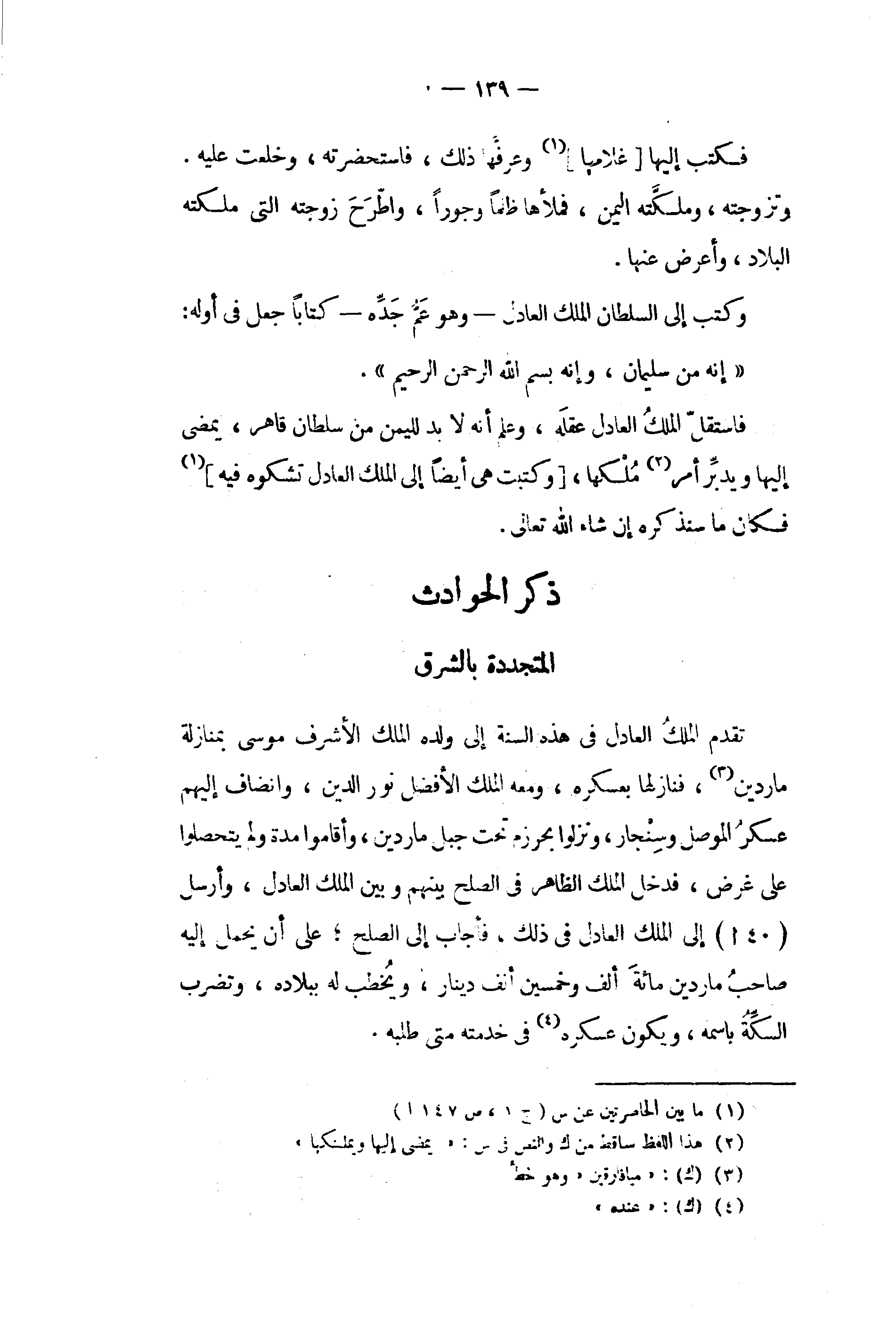ذكر الحوادث