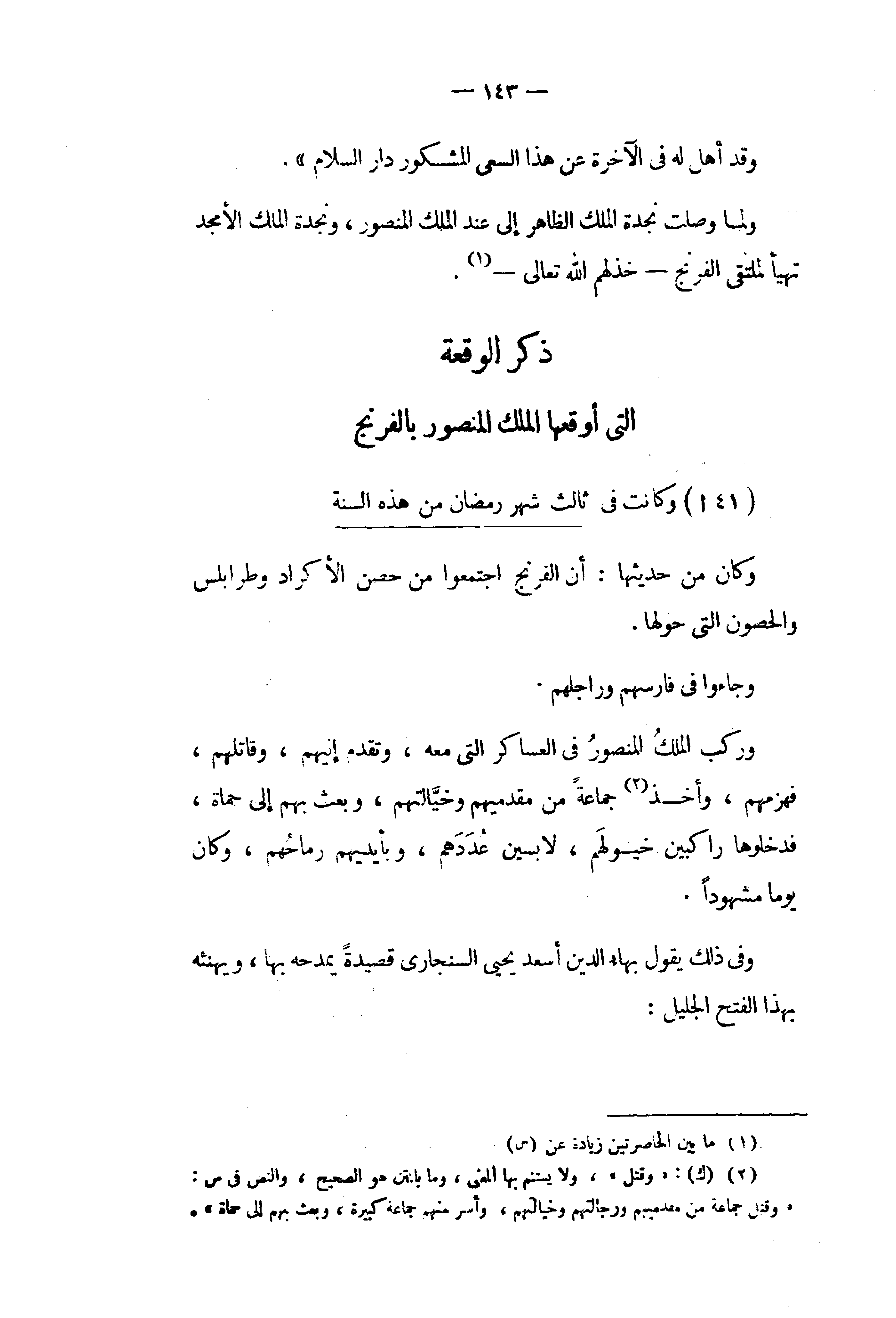 ذكر الوقعة التي أوقعها الملك المنصور بالفرنج