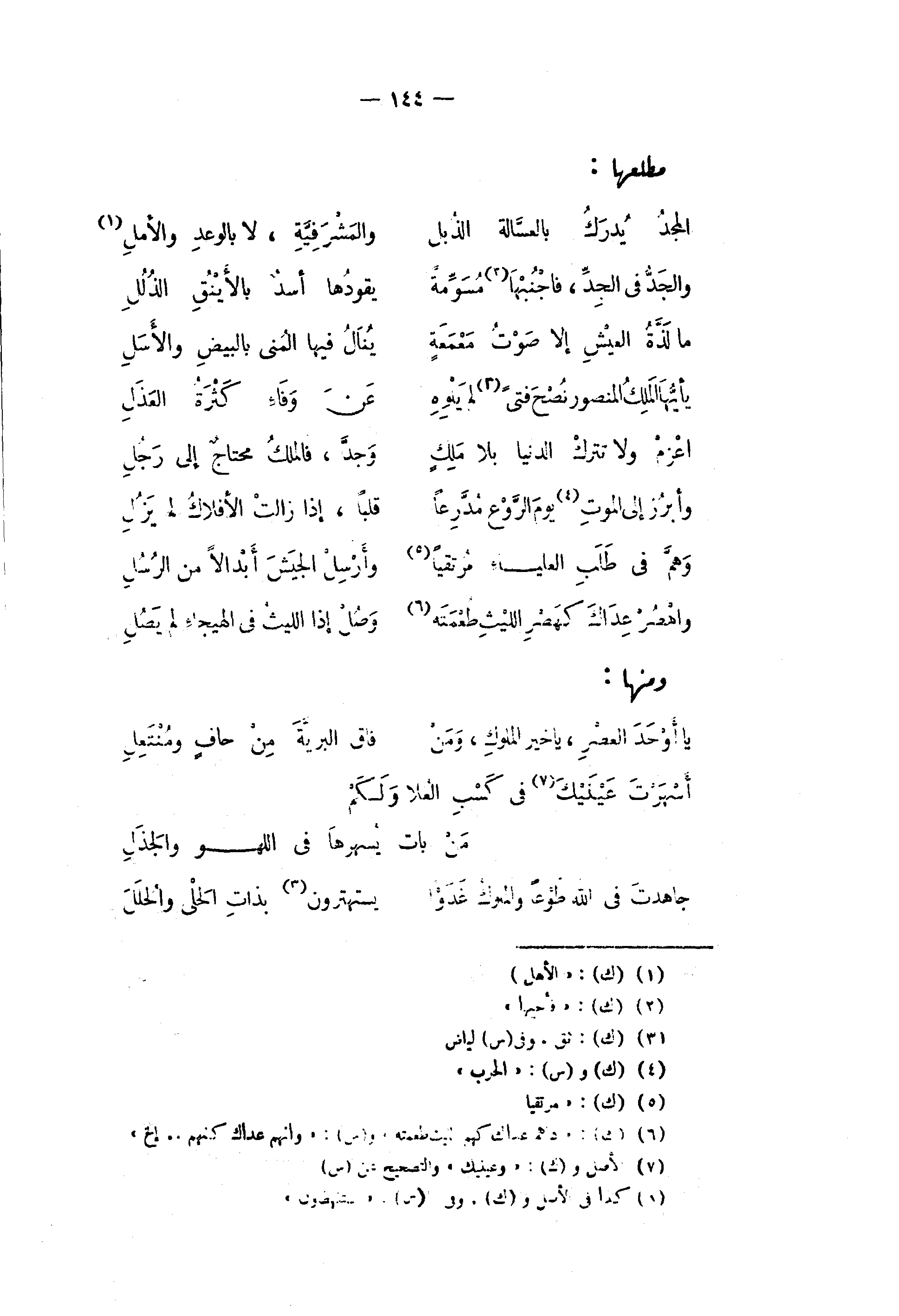 يا أوحد العصر، يا خير الملوك، ومن ... فاق البرية من حاف ومنتعل