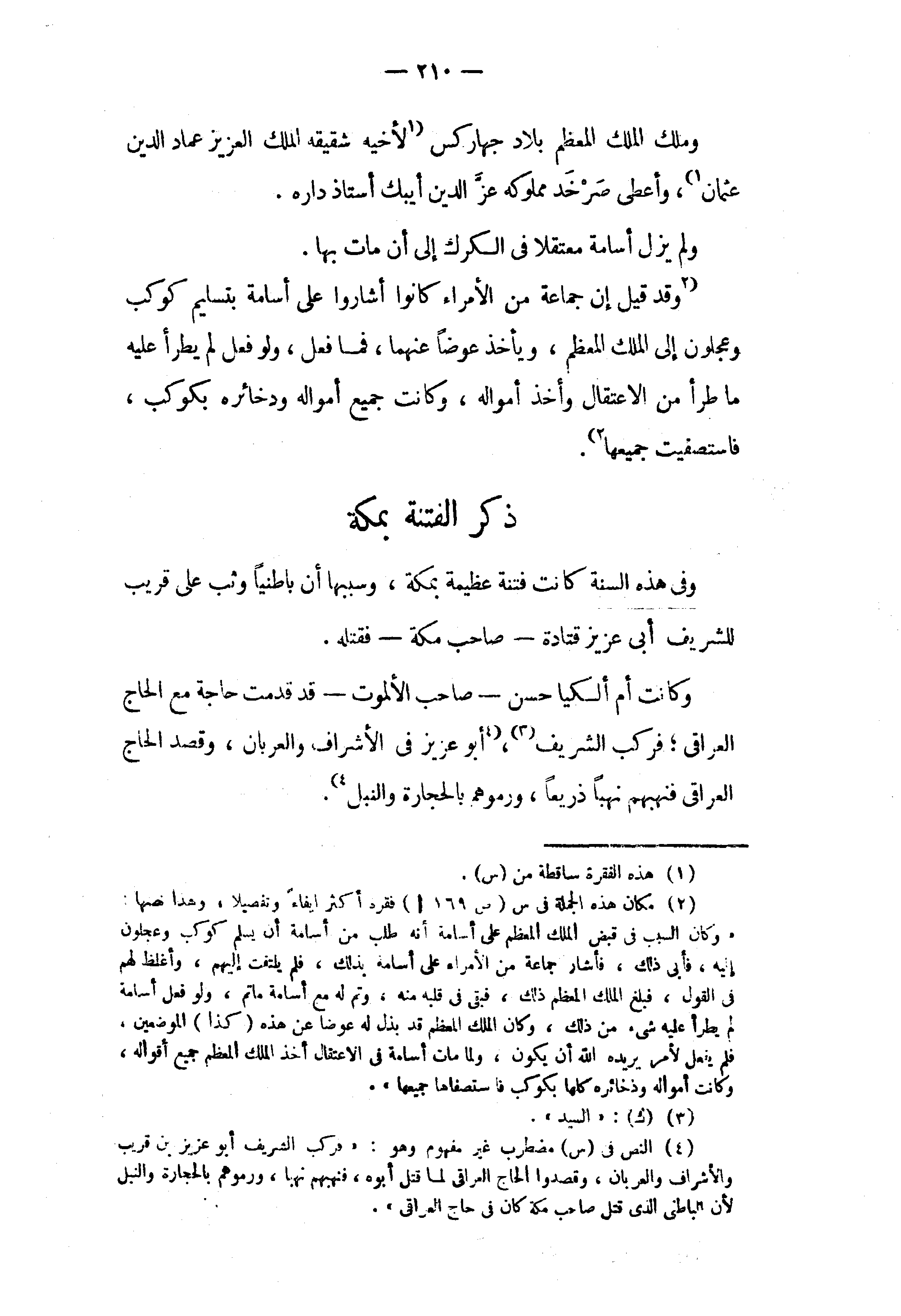 (2) وقد قيل إن جماعة من الأمراء كانوا أشاروا على أسامة بتسليم كوكب وعجلون إلى الملك المعظم، ويأخذ عوضا عنهما، فما فعل، ولو فعل لم يطرأ عليه ما طرأ من الاعتقال وأخذ أمواله، وكانت جميع أمواله ودخائره بكوكب، فاستصفيت جميعها (¬2).