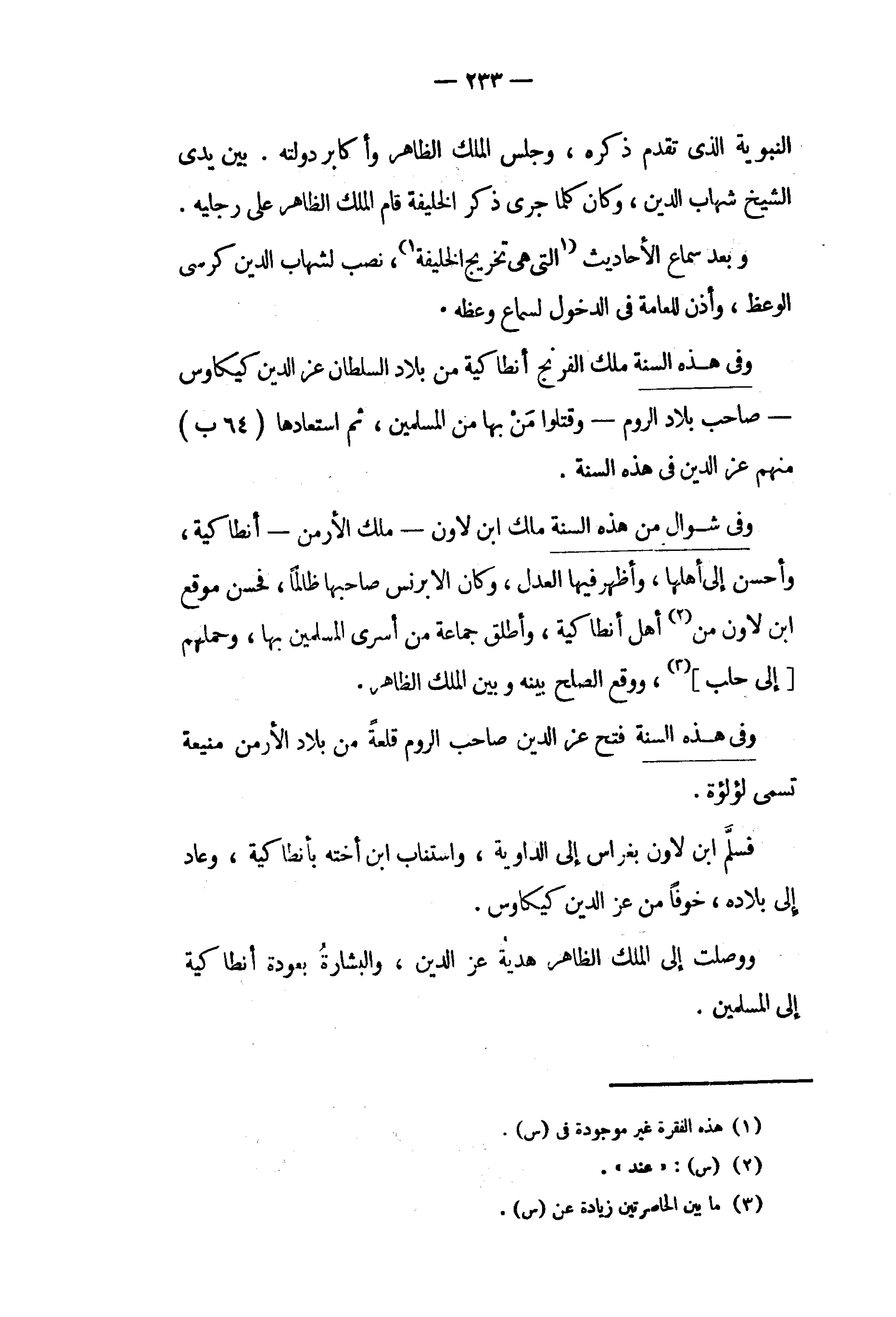 وفى هذه السنة ملك الفرنج أنطاكية من بلاد السلطان عز الدين كيكاوس - صاحب بلاد الروم - وقتلوا من بها من المسلمين، ثم استعادها (64 ب) منهم عز الدين في هذه السنة.