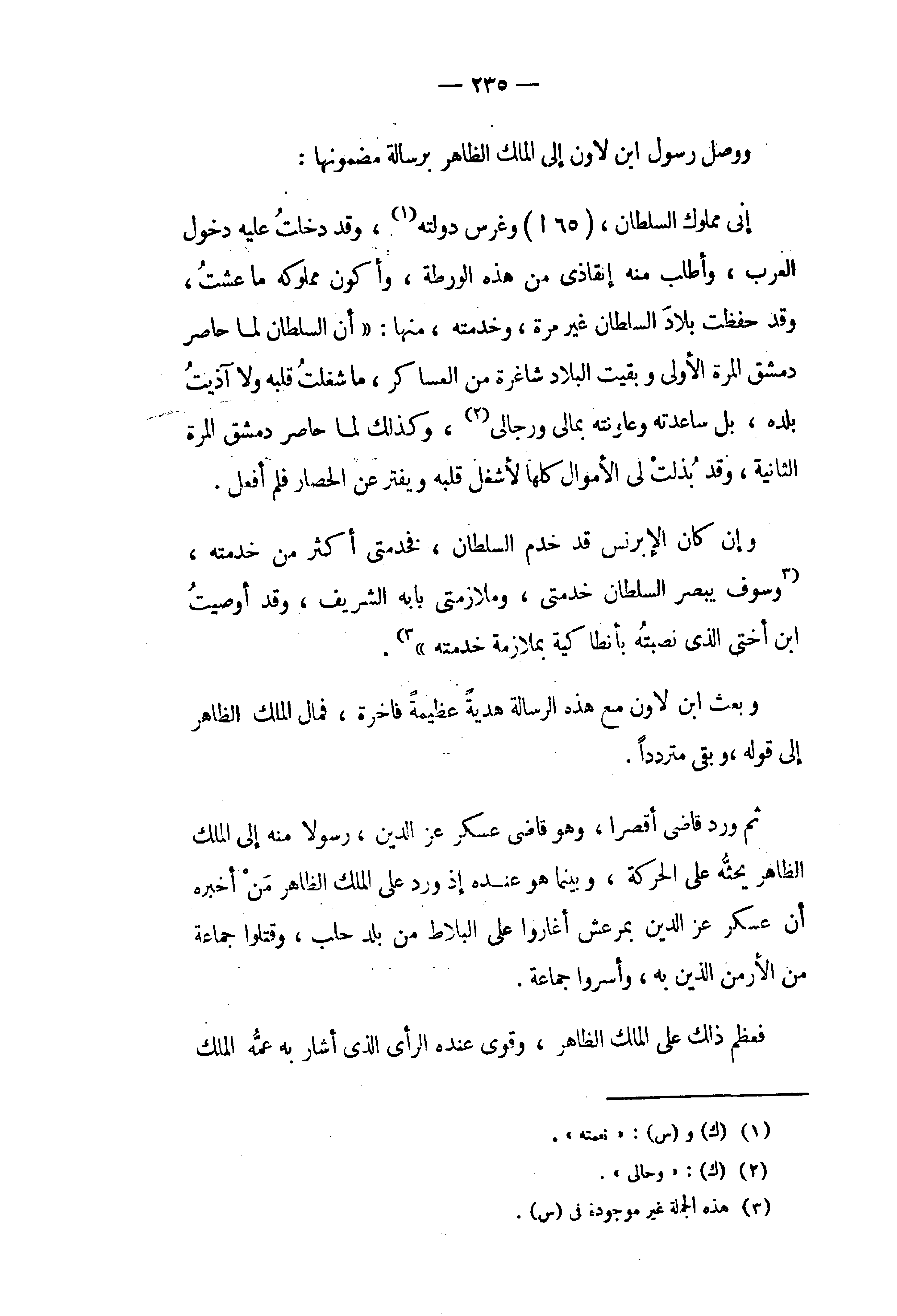 ووصل رسول ابن لاون إلى الملك الظاهر برسالة مضمونها: