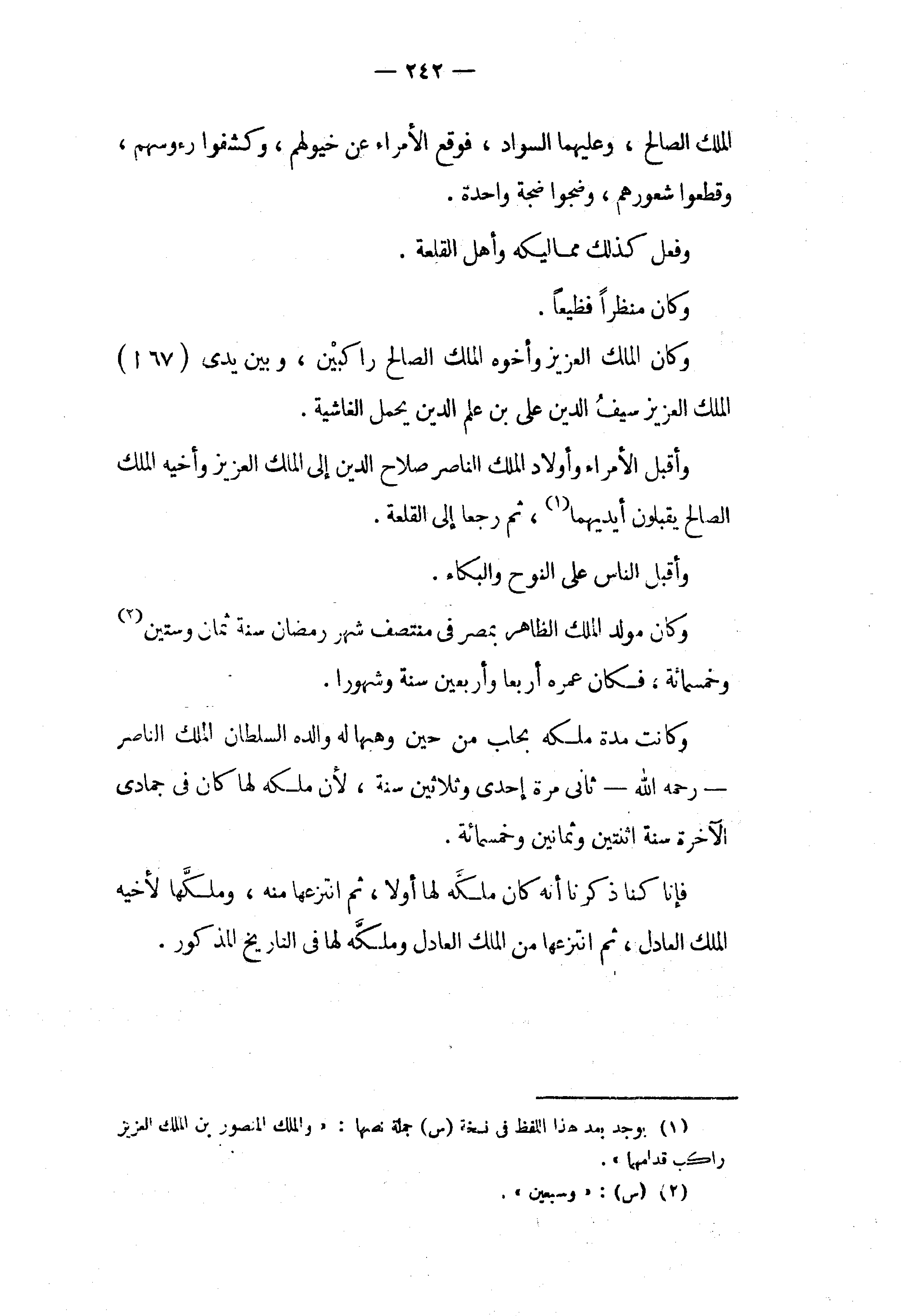 وكان الملك العزيز وأخوه الملك الصالح راكبين، وبين يدى (67 ا) الملك العزيز سيف الدين على بن علم الدين يحمل الغاشية.