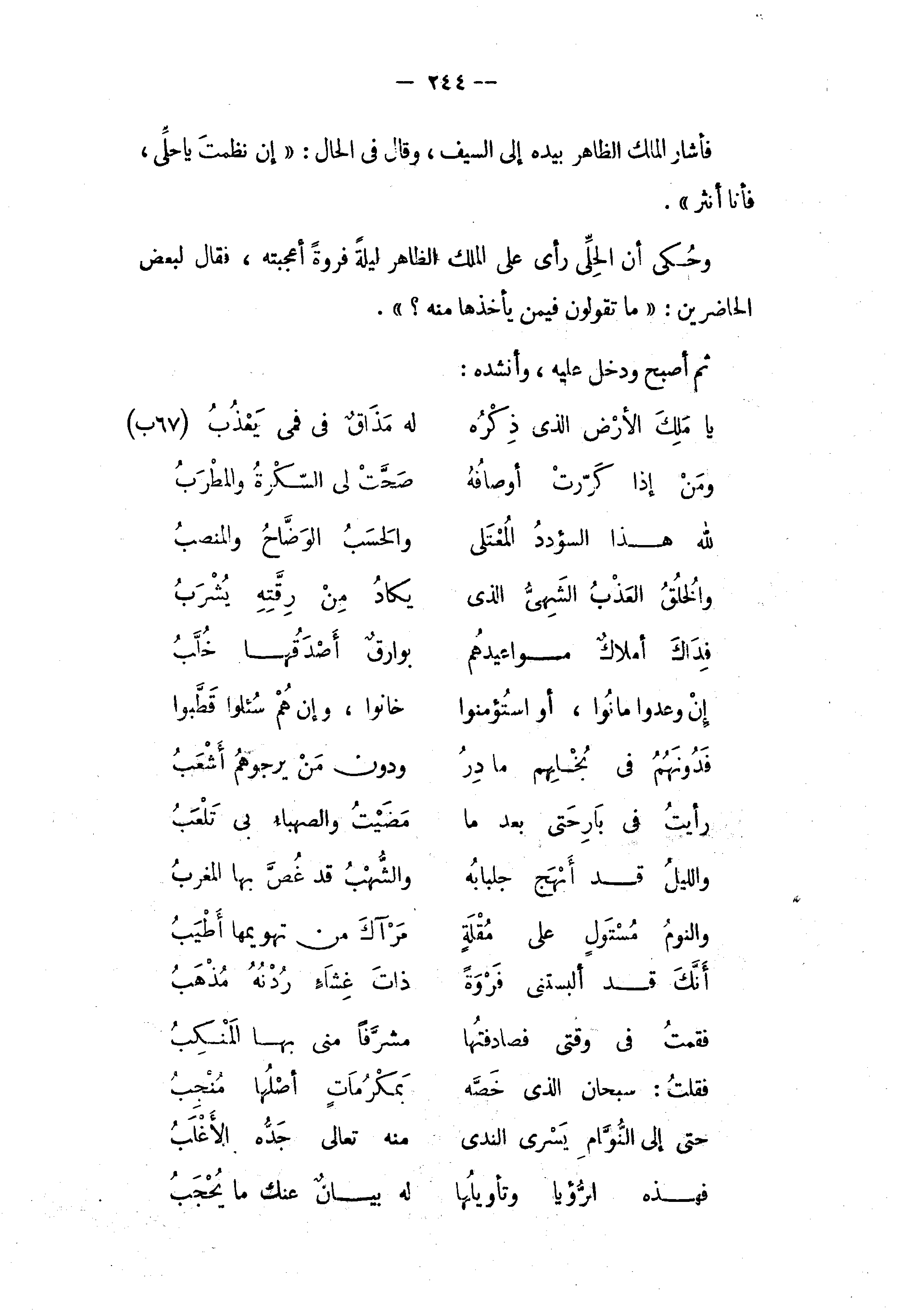 فأشار الملك الظاهر بيده إلى السيف وقال في الحال: «إن نظمت يا حلّى، فأنا أنثر».