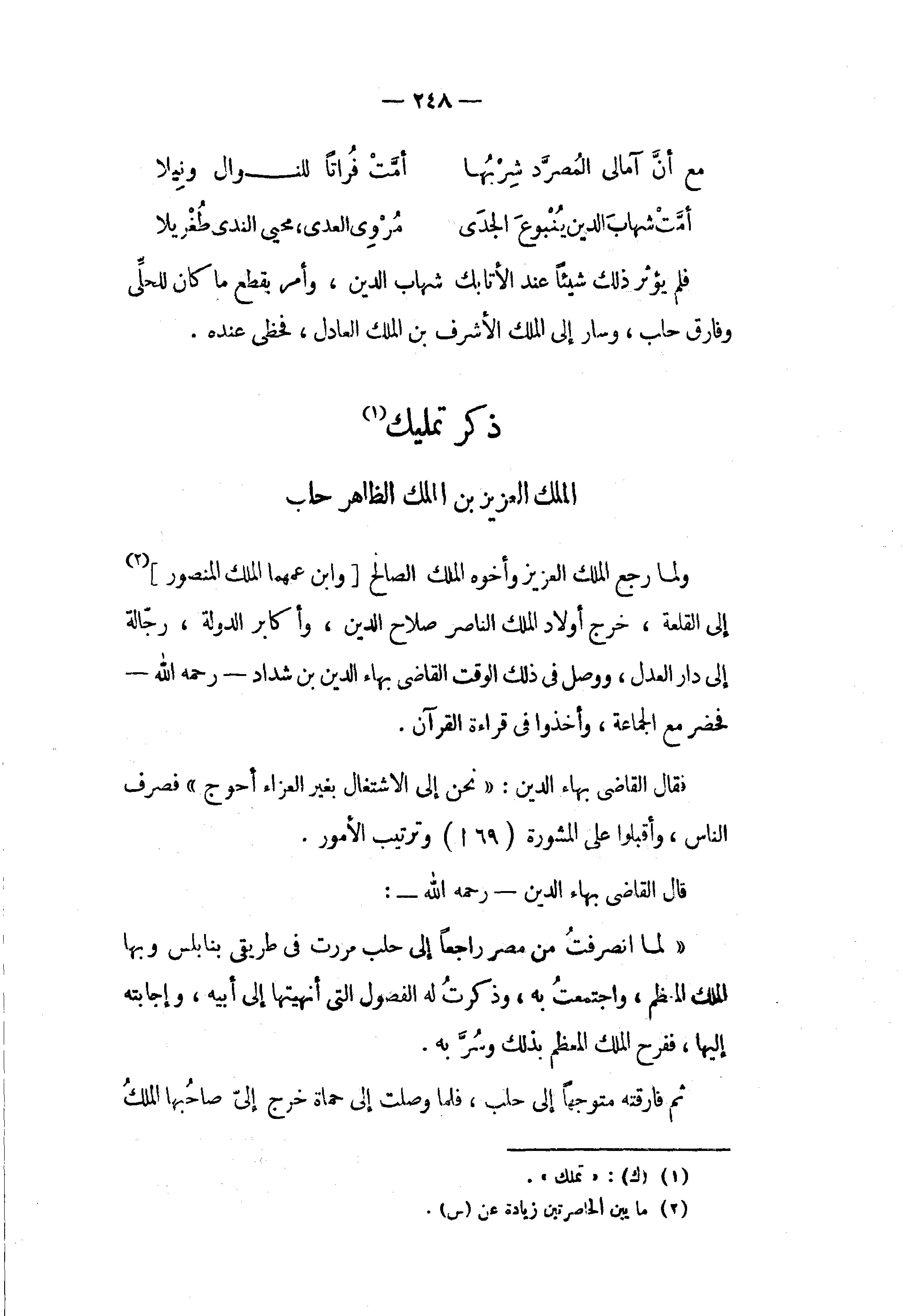 فقال القاضى بهاء الدين: «نحن إلى الاشتغال بغير العزاء أحوج» فصرف الناس، وأقبلوا على المشورة (69 ا) وترتيب الأمور.