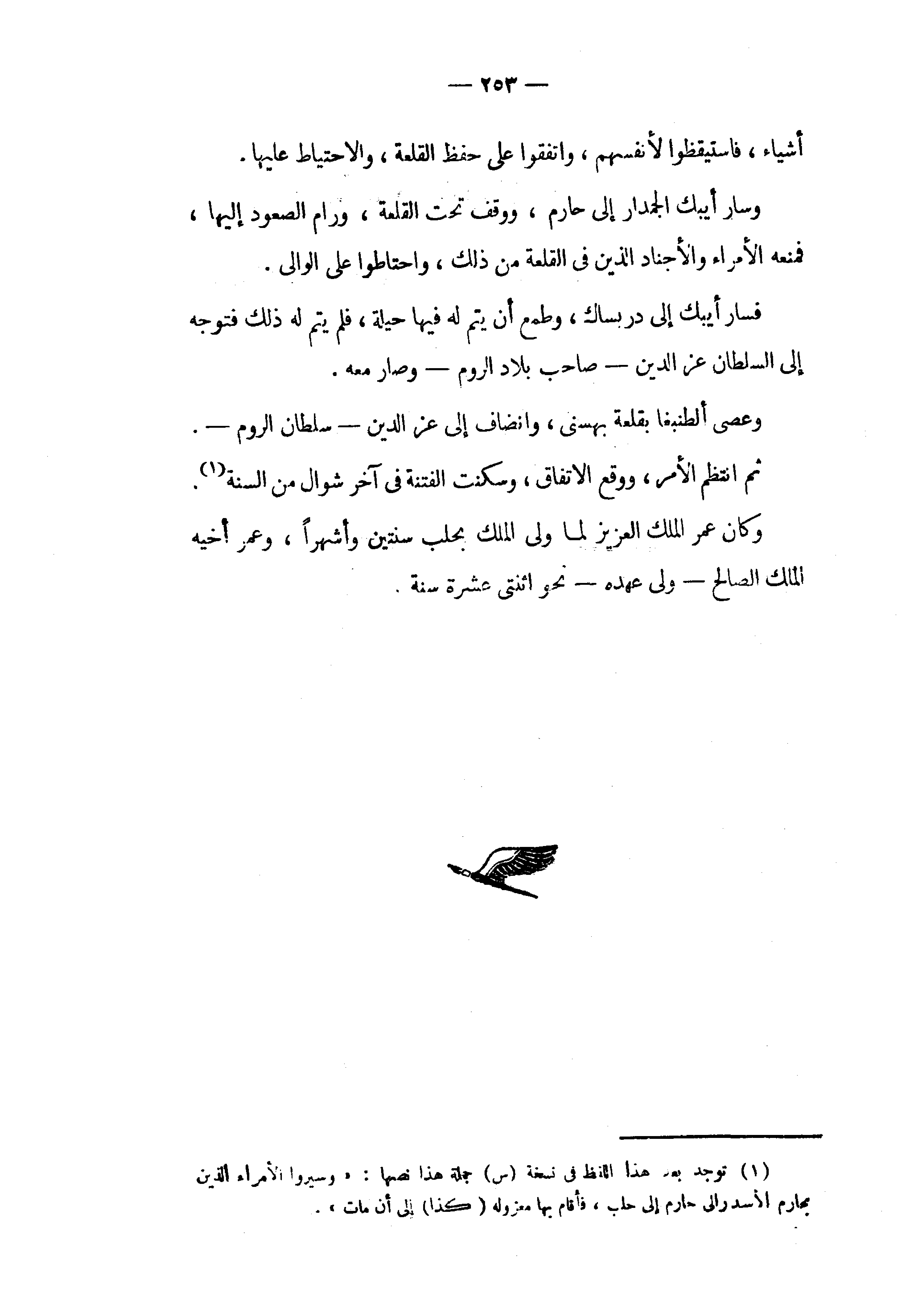 (¬1) توجد بعد هذا اللفظ في نسخة (س) جملة هذا نصها: «وسيروا الأمراء الذين بحارم الأسد والى حارم إلى حلب، فأقام بها معزولة (كذا) إلى أن مات».
