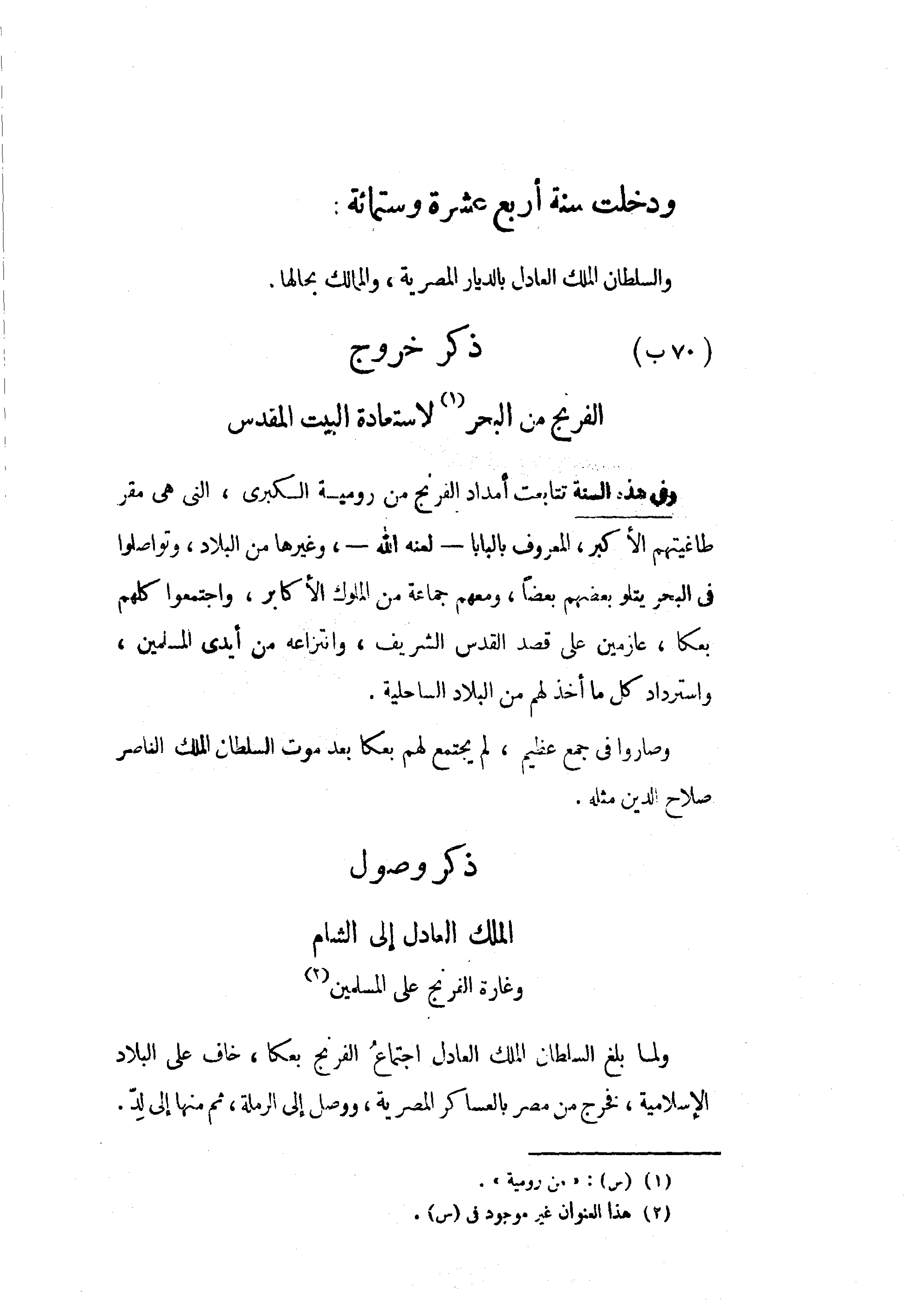 (70 ب) ذكر خروج الفرنج من البحر (¬1) لاستعادة البيت المقدس
