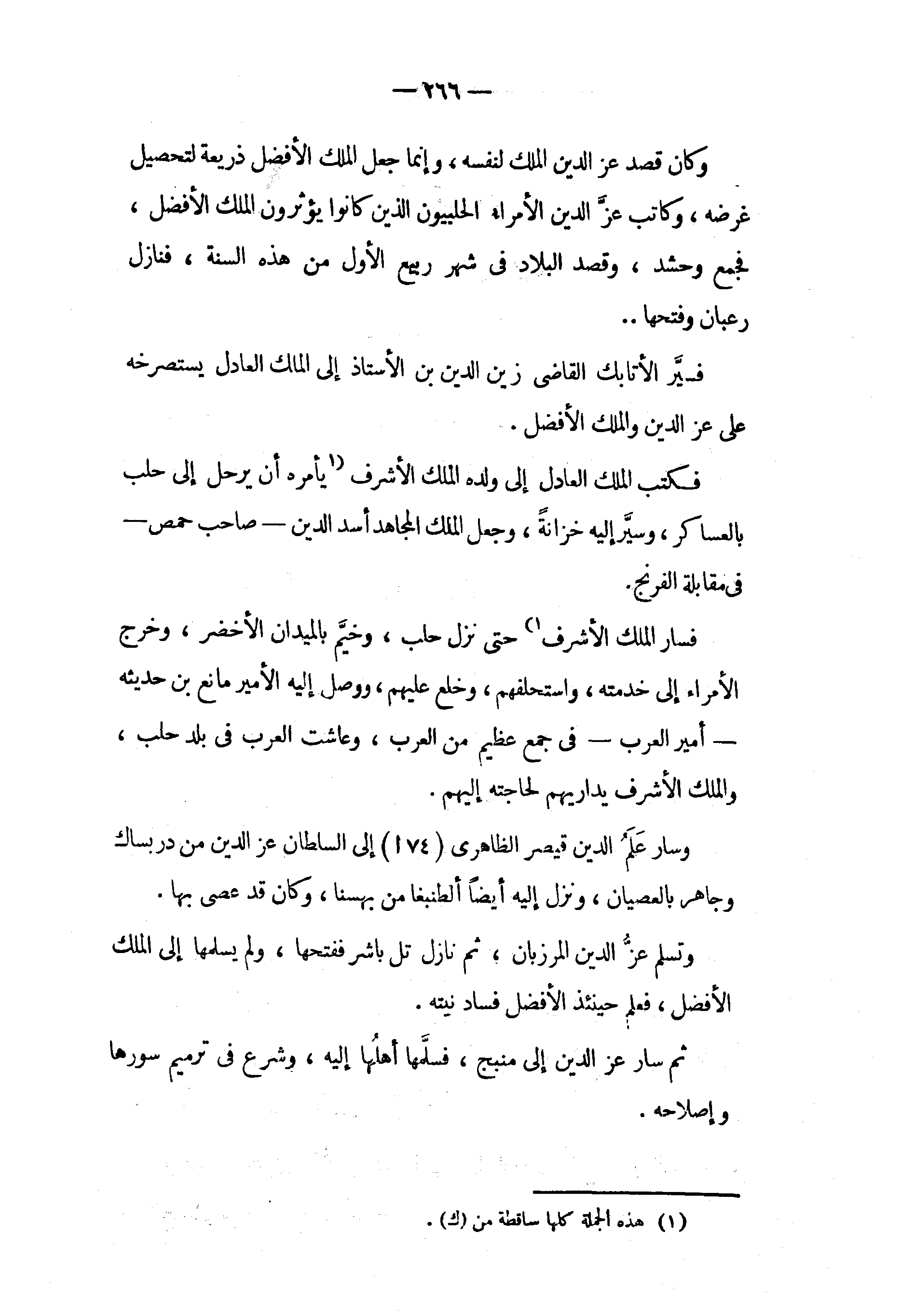 وكان قصد عز الدين الملك لنفسه، وإنما جعل الملك الأفضل ذريعة لتحصيل غرضه، وكاتب عزّ الدين الأمراء الحلبيون الذين كانوا يؤثرون الملك الأفضل، فجمع وحشد، وقصد البلاد في شهر ربيع الأول من هذه السنة، فنازل رعبان وفتحها. . .