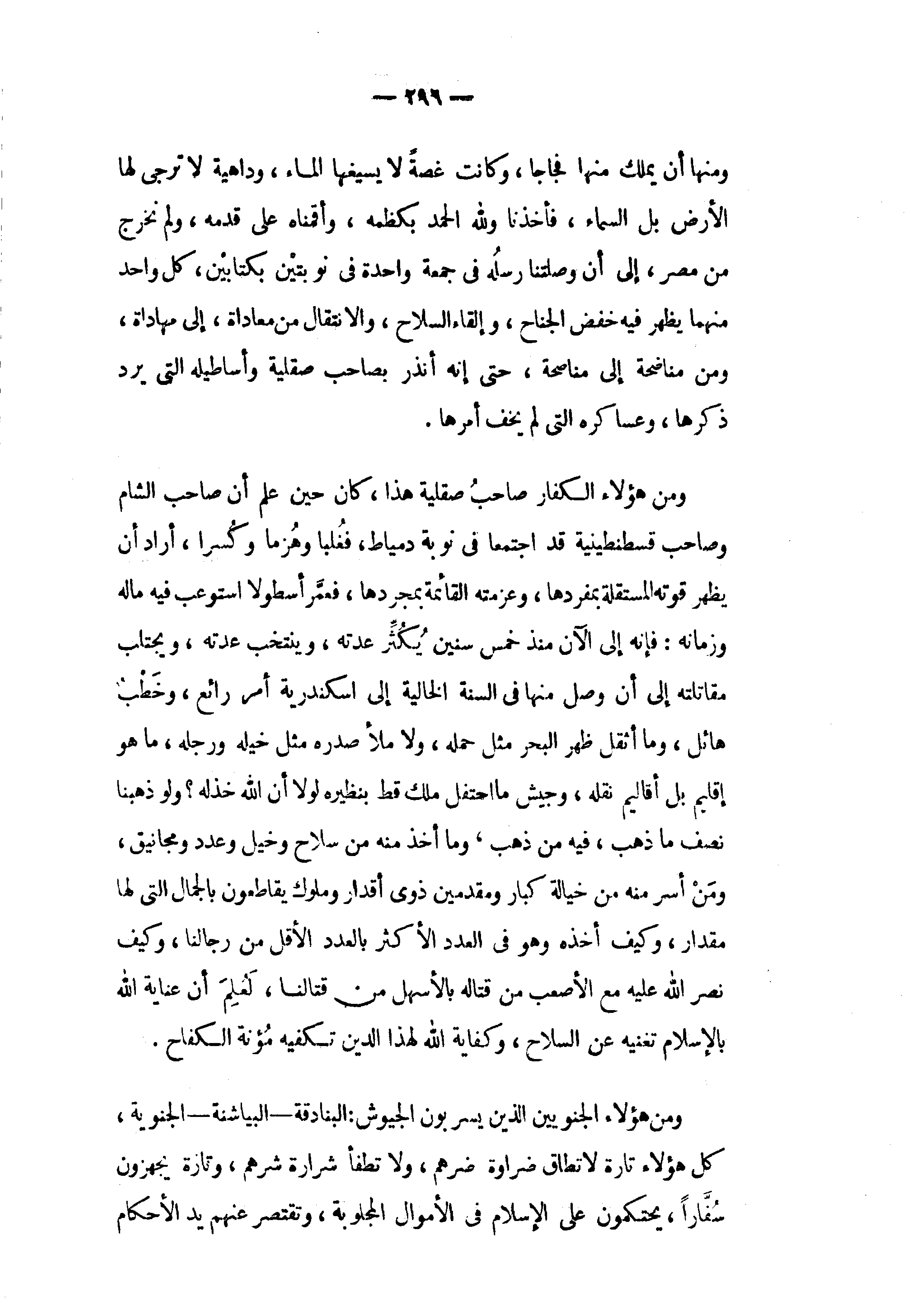 ومن هؤلاء الجنوبين الذين يسربون الجيوش: البنادقة - البياشنة - الجنوية، كل هؤلاء تارة لا تطاق ضراوة ضرهم، ولا تطفأ شرارة شرهم، وتارة يجهزون سفّارا، يحتكمون على الإسلام في الأموال المجلوبة، وتقتصر عنهم يد الأحكام