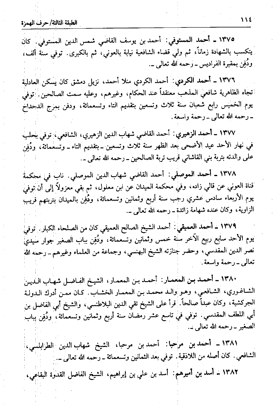 أحمد الكردي منلا أحمد، نزيل دمشق كان يسكن العادلية تجاه الظاهرية شافعي المذهب معتقداً عند الحكام، وغيرهم، وعليه سمت الصالحين. توفي يوم الخميس رابع شعبان سنة ثلاث وتسعين بتقديم التاء وتسعمائة، ودفن بمرج الدحداح رحمه الله تعالى رحمة واسعة.