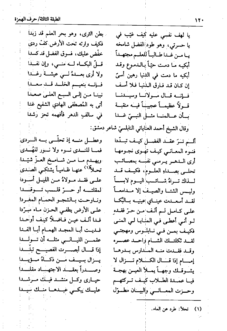 وقال الشيخ أحمد العناياتي النابلسي شاعر دمشق: