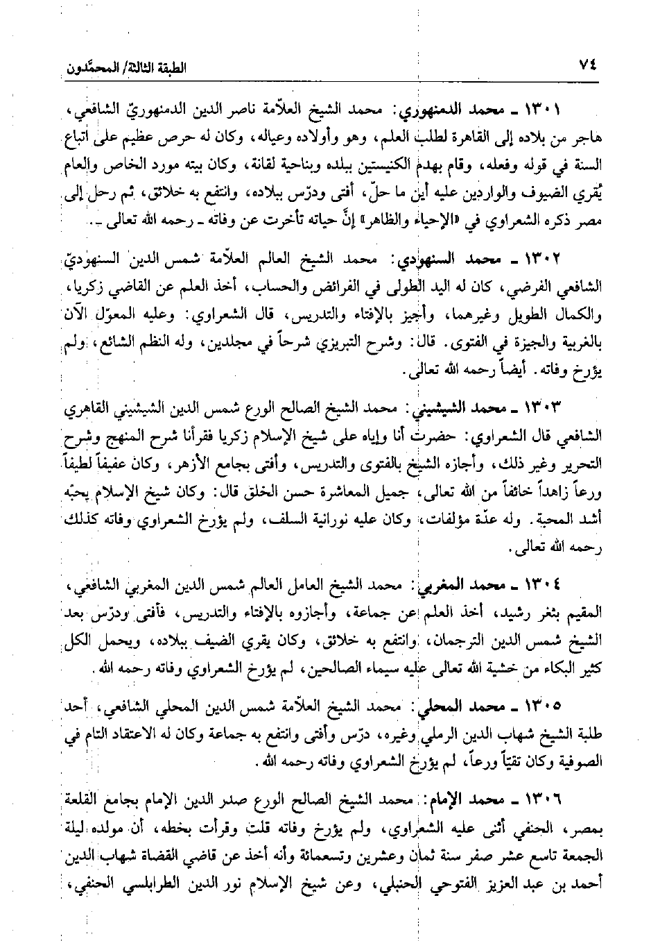 محمد الشيخ العلامة شمس الدين المحلي الشافعي، أحد طلبة الشيخ شهاب الدين الرملي وغيره، درس وأفتى وانتفع به جماعة وكان له الاعتقاد التام في الصوفية وكان تقياً ورعاً، لم يؤرخ الشعراوي وفاته رحمه الله.