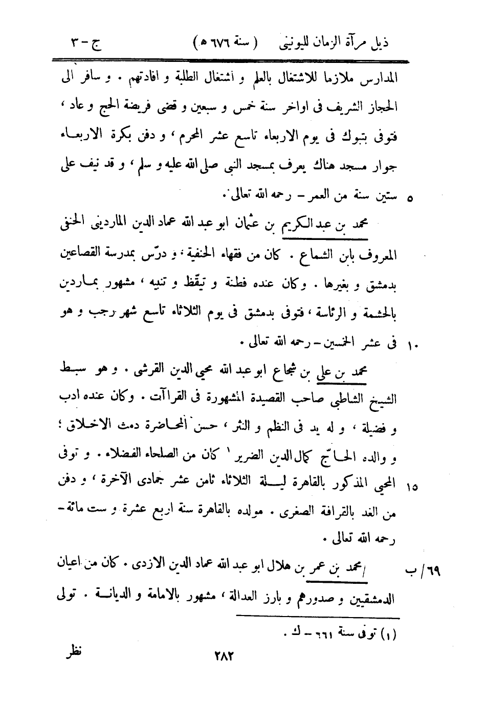 محمد بن عمر بن هلال أبو عبد الله عماد الدين الأزدي. كان من أعيان الدمشقيين وصدورهم وبارز العدالة، مشهور بالإمامة والديانة. تولى