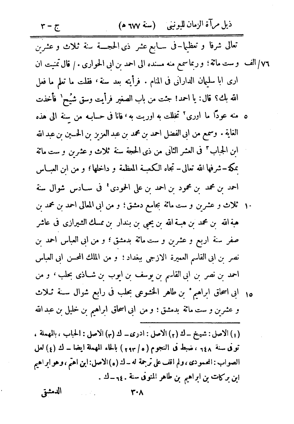 تعالى شرفاً وتعظيماً - في سابع عشر ذي الحجة سنة ثلاث وعشرين وست مائة؛ وربما سمع منه مسنده إلى أحمد بن أبي الحواري. قال: تمنيت أن أرى أبا سليمان الداراني في المنام. فرأيته بعد سنة، فقلت ما تعلم ما فعل الله بك؟ قال: يا أحمد! جئت من باب الصغير فرأيت وسق شيح فأخذت منه عوداً ما اوري تخللت به وأوريت به، فأنا في حسابه من سنة إلى هذه الغاية.