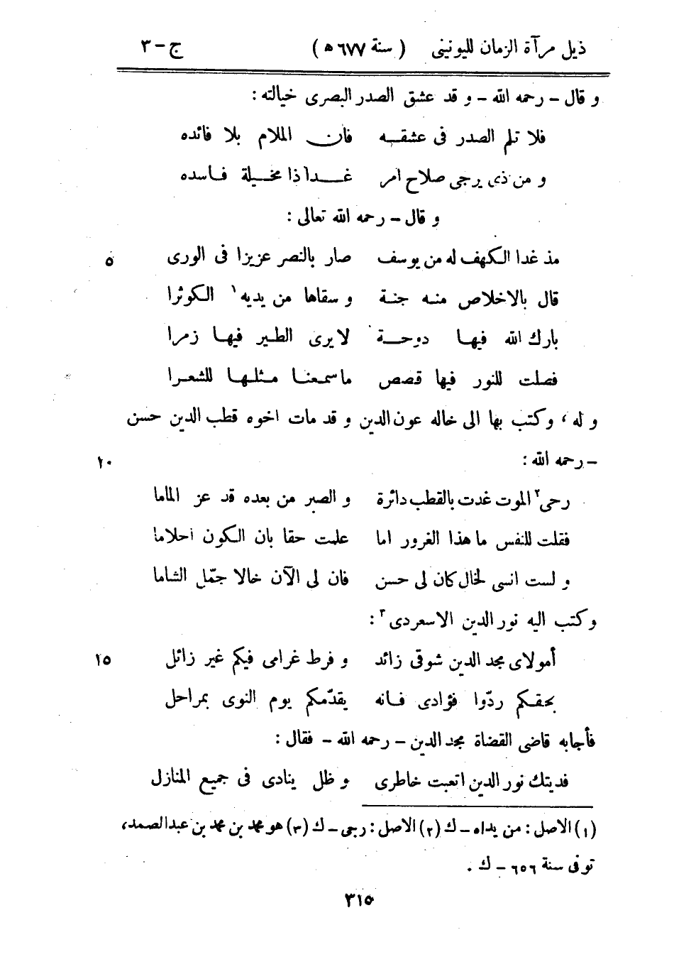 وقال - رحمه الله - وقد عشق الصدر البصري خيالته: