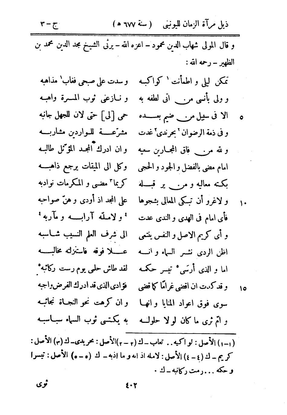 وقال المولى شهاب الدين محمود أعزه الله يرثي الشيخ مجد الدين محمد بن الظهير رحمه الله: