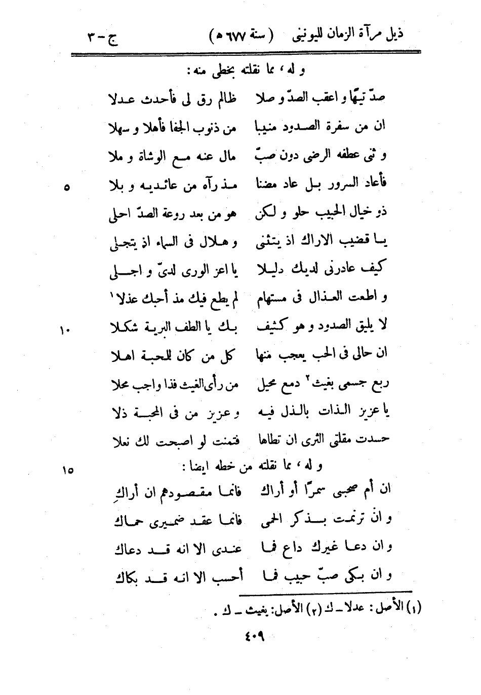 صد تيهاً وأعقب الصد وصلاً ... ظالم رق لي فأحدث عدلا