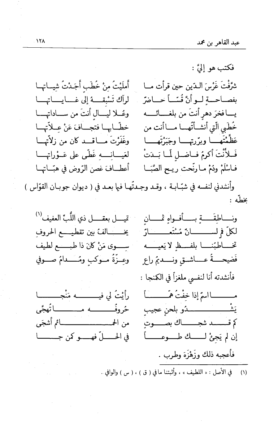 تخاطبنا بلفظ لا يعيه ... سوى من كان ذا طبع لطيف