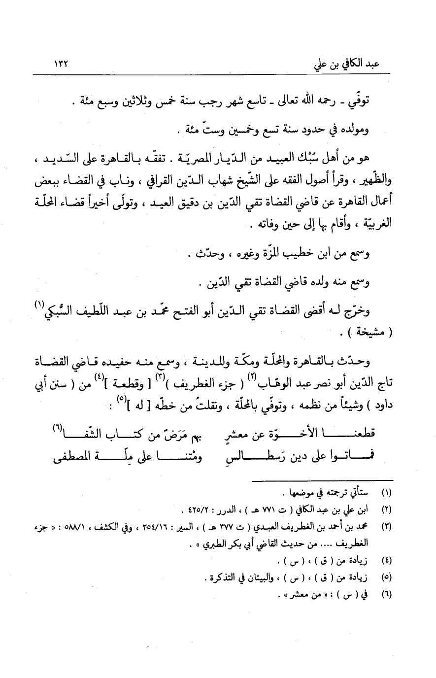 وحدث بالقاهرة والمحلة ومكة والمدينة، وسمع منه حفيده قاضي القضاة تاج الدين أبو نصر عبد الوهاب جزء الغطريف وقطعة من سنن أبي داود وشيئاً من نظمه، وتوفي بالمحلة، ونقلت من خطه له: