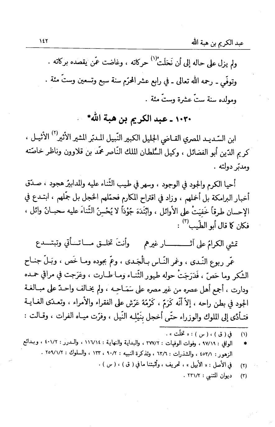 أحيا الكروم والجود، وسهر في طيب الثناء عليه والمدابير هجود، صدق أخبار البرامكة بل أخملهم، وزاد في اقتراح المكارم فحملهم الخجل بل جملهم، ابتدع في الإحسان طرقاً خفيت على الأوائل، وابتده جوداً لا يحسن الثناء عليه سحبان وائل، فكان كما قال أبو الطيب: