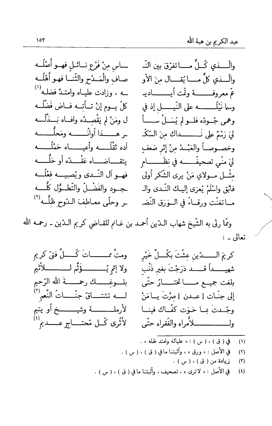 ومما رثى به الشيخ شهاب الدين أحمد بن غانم للقاضي كريم الدين رحمه الله تعالى: