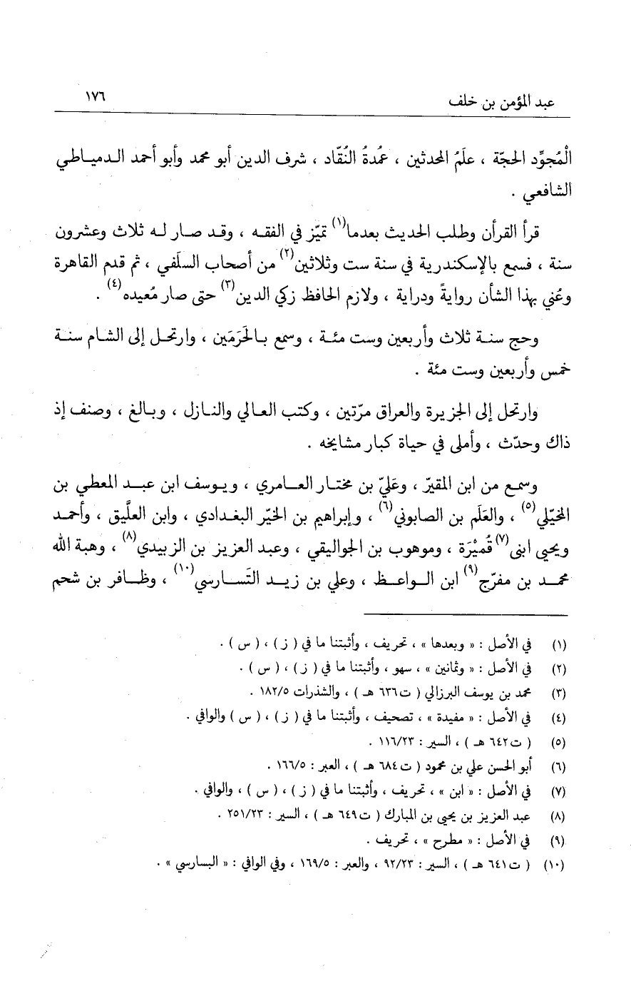 المجود الحجة، علم المحدثين عمدة النقاد، شرف الدين أبو محمد وأبو أحمد الدمياطي الشافعي.
