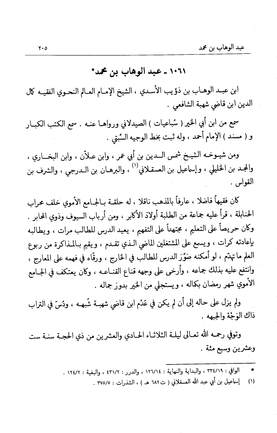 ابن عبد الوهاب بن ذؤيب الأسدي، الشيخ الإمام العالم النحوي الفقيه كمال الدين ابن قاضي شهبة الشافعي.