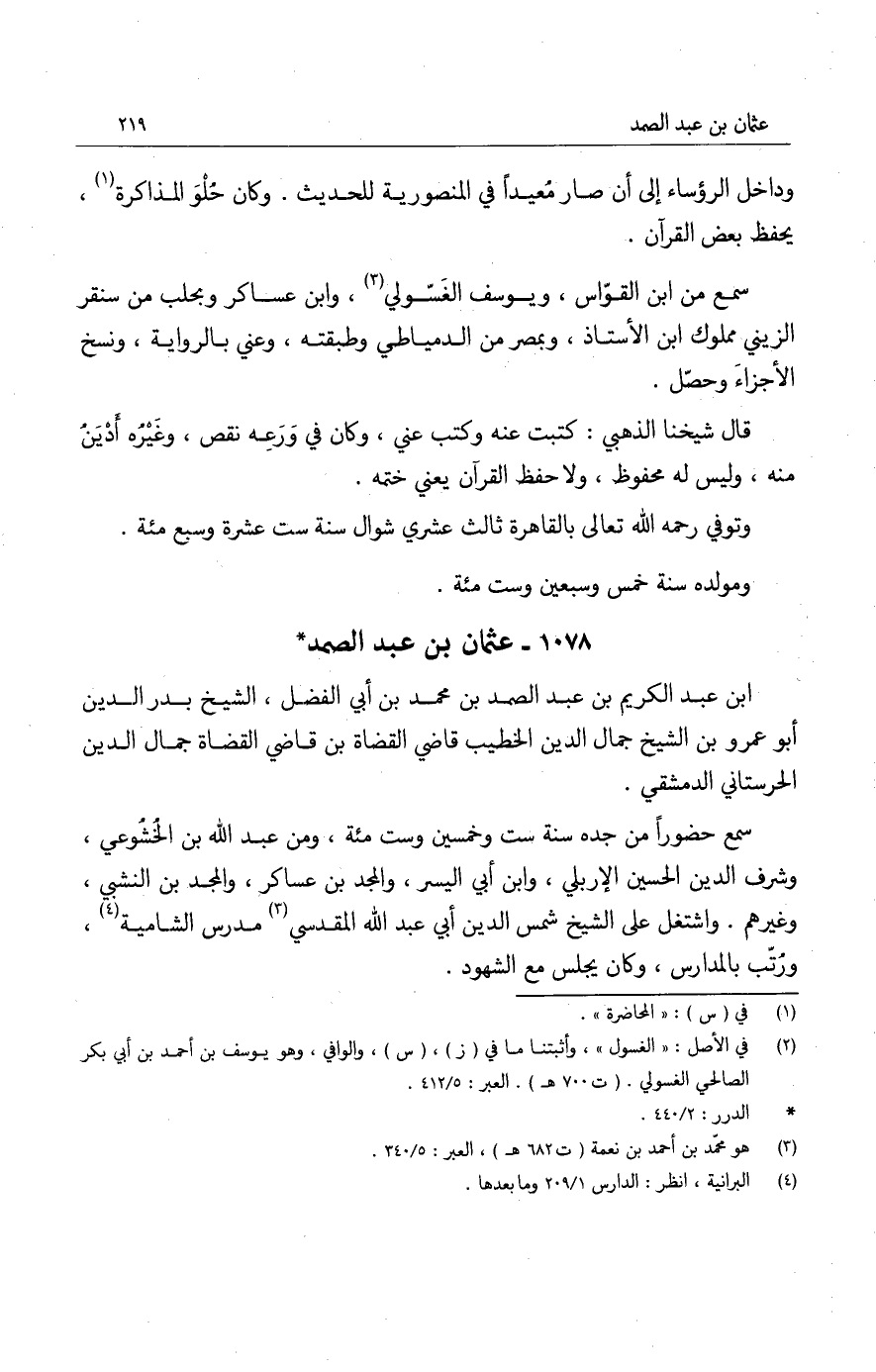 ابن عبد الكريم بن عبد الصمد بن محمد بن أبي الفضل، الشيخ بدر الدين أبو عمرو بن الشيخ جمال الدين الخطيب قاضي القضاة بن قاضي القضاة جمال الدين الحرستاني الدمشقي.