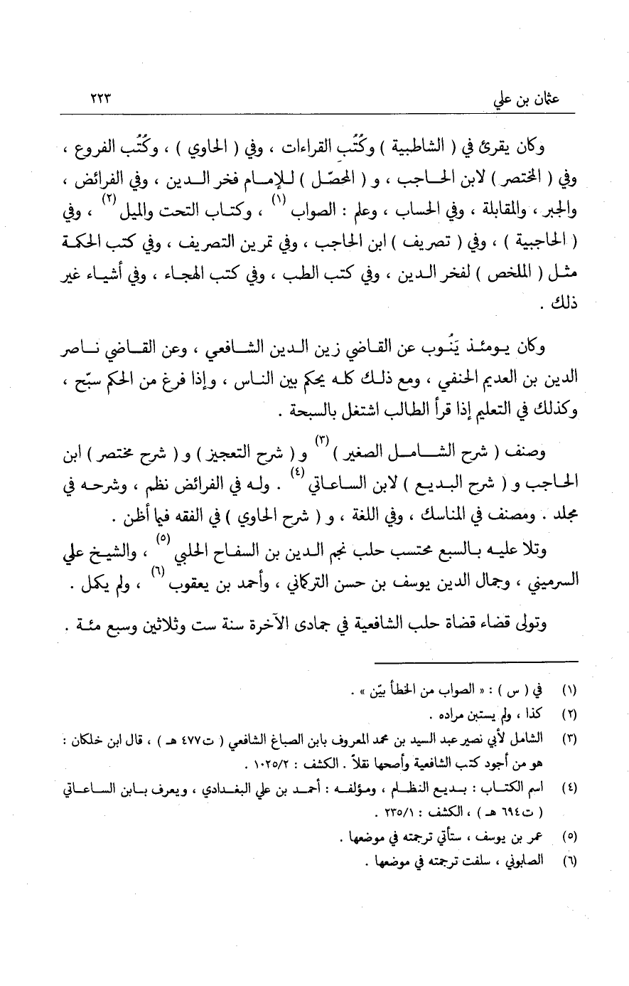 وكان يومئذ ينوب عن القاضي زين الدين الشافعي، وعن القاضي ناصر الدين بن العديم الحنفي، ومع ذك كله يحكم بين الناس، وإذا فرغ من الحكم سبح، وكذلك في التعليم إذا قرأ الطالب اشتغل بالسبحة.