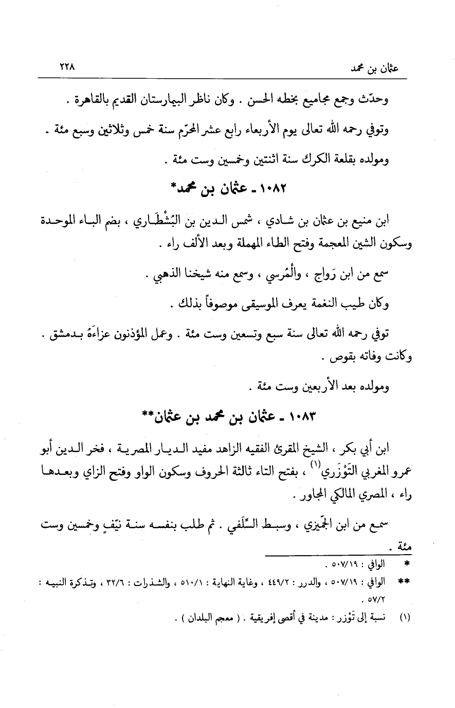ابن أبي بكر، الشيخ المقرئ الفقيه الزاهد مفيد الديار المصرية، فخر الدين أبو عمرو المغربي التوزري، بفتح التاء ثالثة الحروف وسكون الواو وفتح الزاي وبعدها راء، المصري المالكي المجاور.