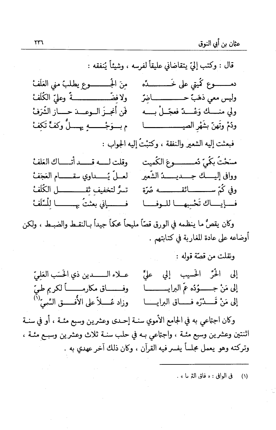 قال: وكتب إلي يتقاضاني عليقاً لفرسه، وشيئاً ينفقه: