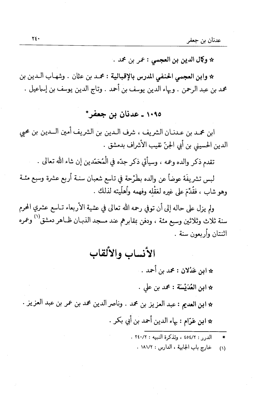 ابن محمد بن عدنان الشريف، شرف الدين بن الشريف أمين الدين بن محيي الدين الحسيني بن أبي الجن نقيب الأشراف بدمشق.