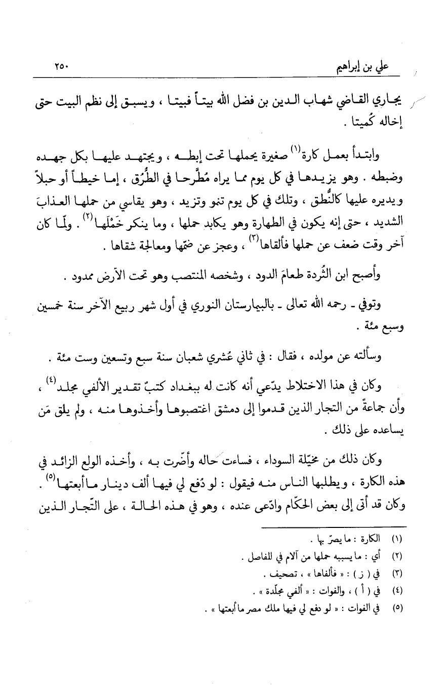 وكان ذلك من مخيلة السوداء، فساءت حاله وأضرت به، وأخذه الولع الزائد في هذه الكارة، ويطلبها الناس منه فيقول: لو دفع لي فيها ألف دينار ما أبعتها. وكان قد أتى إلى بعض الحكام وادعى عنده، وهو في هذه الحالة، على التجار الذين