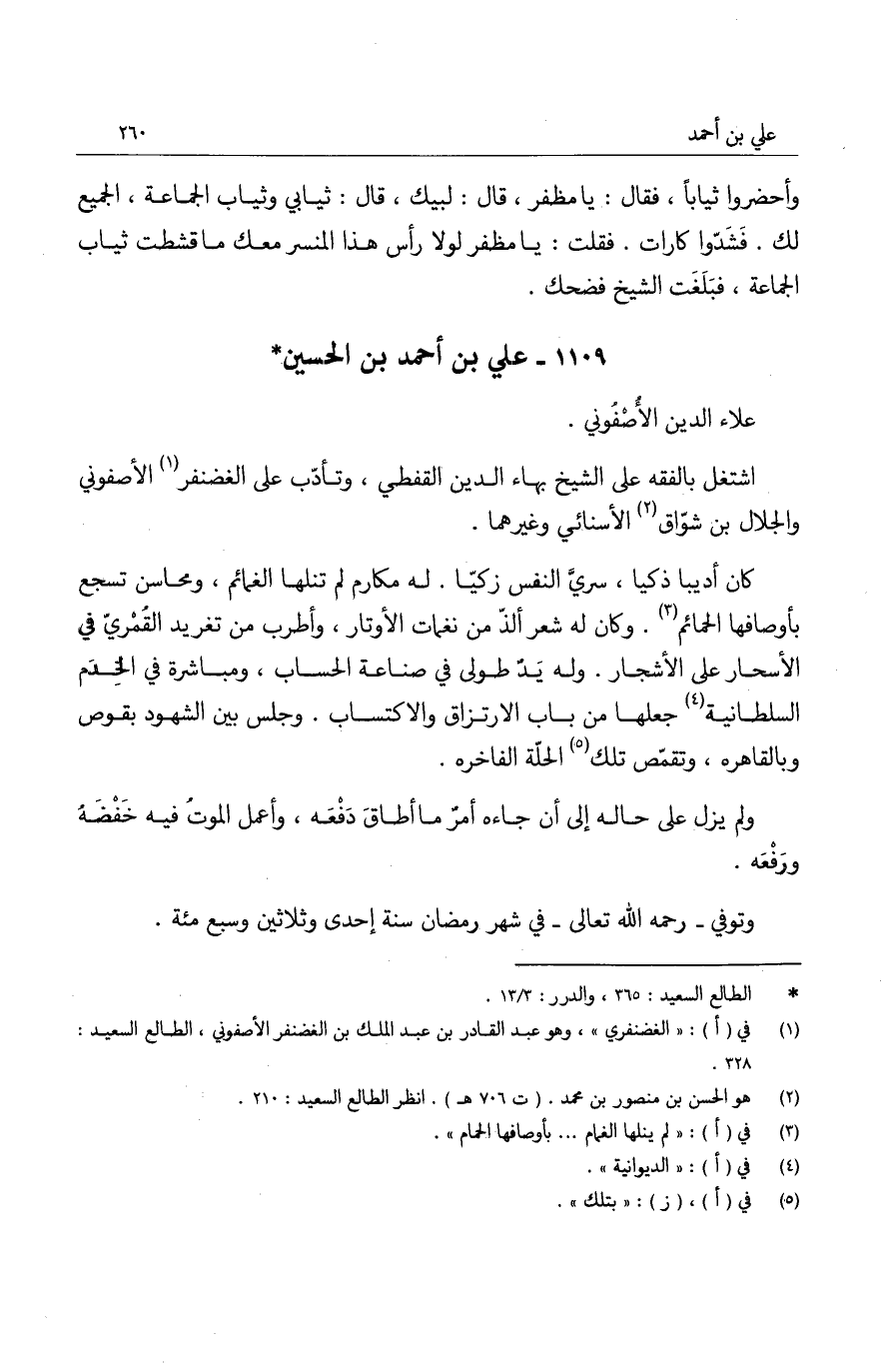 وأحضروا ثياباً، فقال: يا مظفر، قال: لبيك، قال: ثيابي وثيابك الجماعة، الجميع لك. فشدوا كارات. فقلت: يا مظفر لولا رأس هذا المنسر معك ما قشطت ثياب الجماعة، فبلغت الشيخ فضحك.