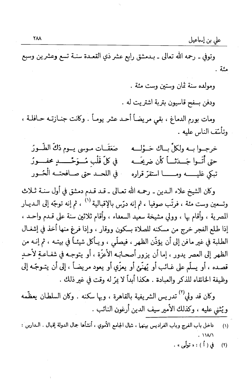 ودفن بسفح قاسيون بتربة اشتريت له.
