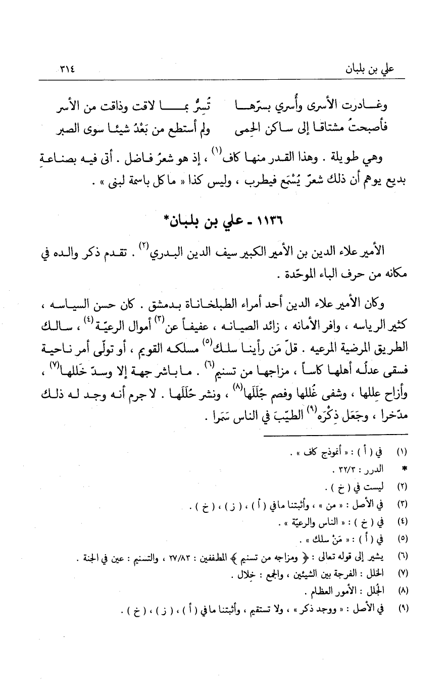 وكان الأمير علاء الدين أحد أمراء الطبلخاناة بدمشق. وكان حسن السياسة، كثير الرياسة، وافر الأمانة، زائد الصيانة، عفيفاً عن أموال الرعية، سالك الطريق المرضية المرعية. قل من رأينا سلك مسلكه القويم، أو تولى أمر ناحية فسقى عدله أهلها كأساً، مزاجها من تسنيم. ما باشر جهة إلا وسد خللها، وأزاح عللها، وشفى غللها وفصم جللها، ونشر حللها. لا جرم أنه وجد له ذلك مدخراً، وجعل ذكره الطيب في الناس سمرا.