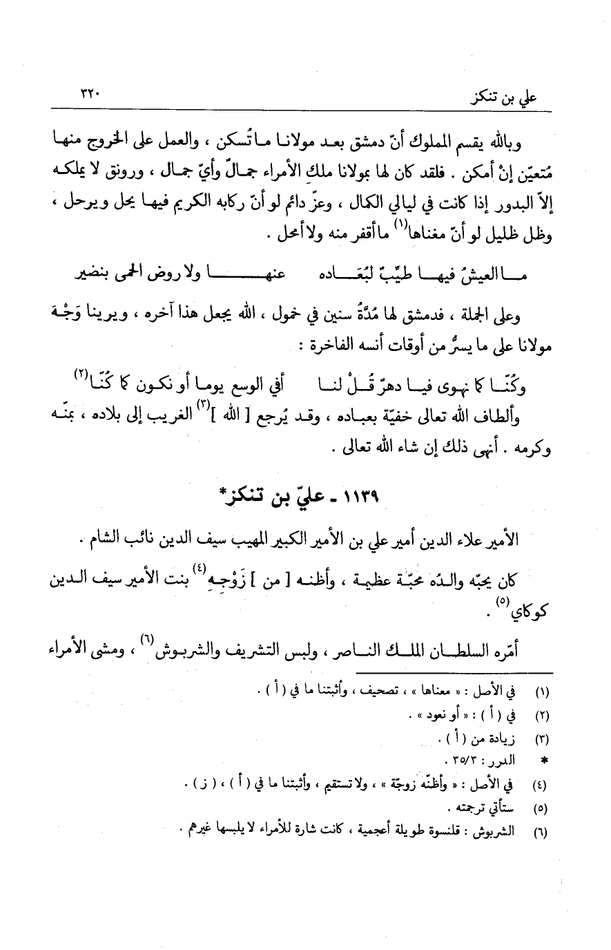 وبالله يقسم المملوك أن دمشق بعد مولانا ما تسكن، والعمل على الخروج منها متعين إن أمكن. فلقد كان لها بمولانا ملك الأمراء جمال وأي جمال، ورونق لا يملكه إلا البدور إذا كانت في ليالي الكمال، وعز دائم لو أن ركابه الكريم فيها يحل ويرحل، وظل ظليل لو أن مغناها ما أقفر منه ولا محل.