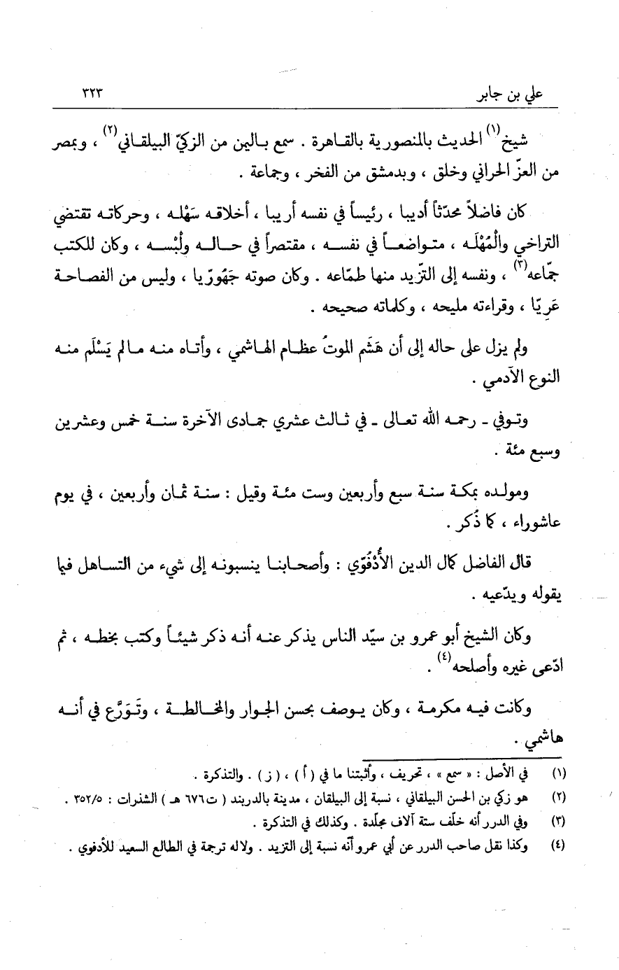 قال الفاضل كمال الدين الأدفوي: وأصحابنا ينسبونه إلى شيء من التساهل فيما يقوله ويدعيه.
