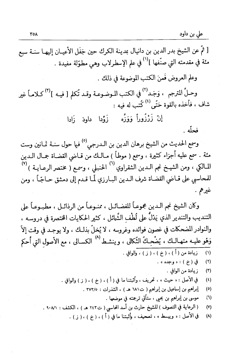 ثم عن الشيخ بدر الدين بن دانيال بمدينة الكرك حين جفل الأعيان إليها سنة سبع مئة في مقدمته التي صنفها في علم الإسطرلاب وهي مطولة مفيدة.