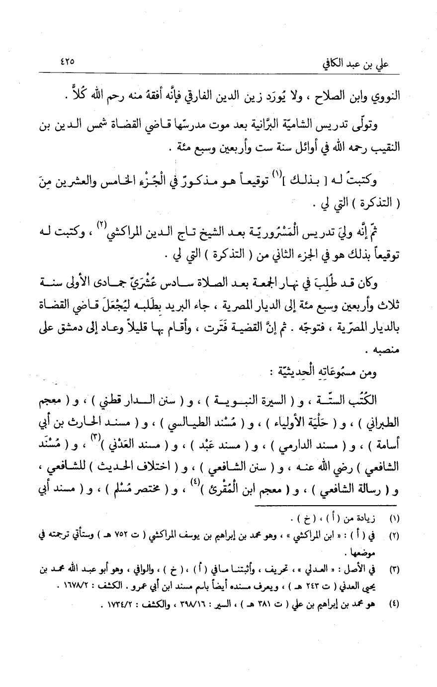 والشفاء للقاضي عياض، ورسالة القشيري، ومعجم الإسماعيلي، والسيرة للدمياطي، وموطأ يحيى بن يحيى، وموطأ القعنبي.