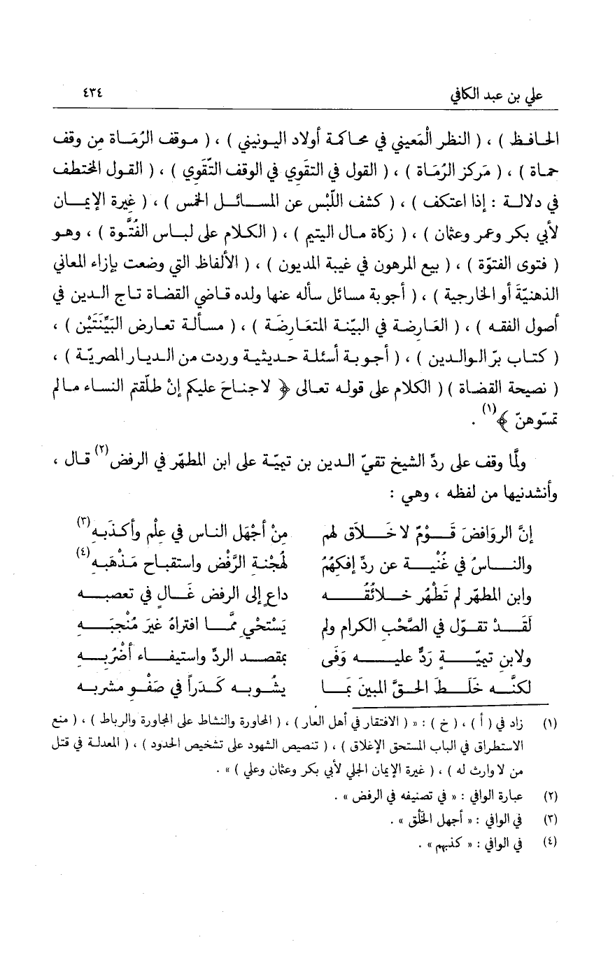 وليس للناس في علم الكلام هدى ... بل بدعة وضلال في تكسبه