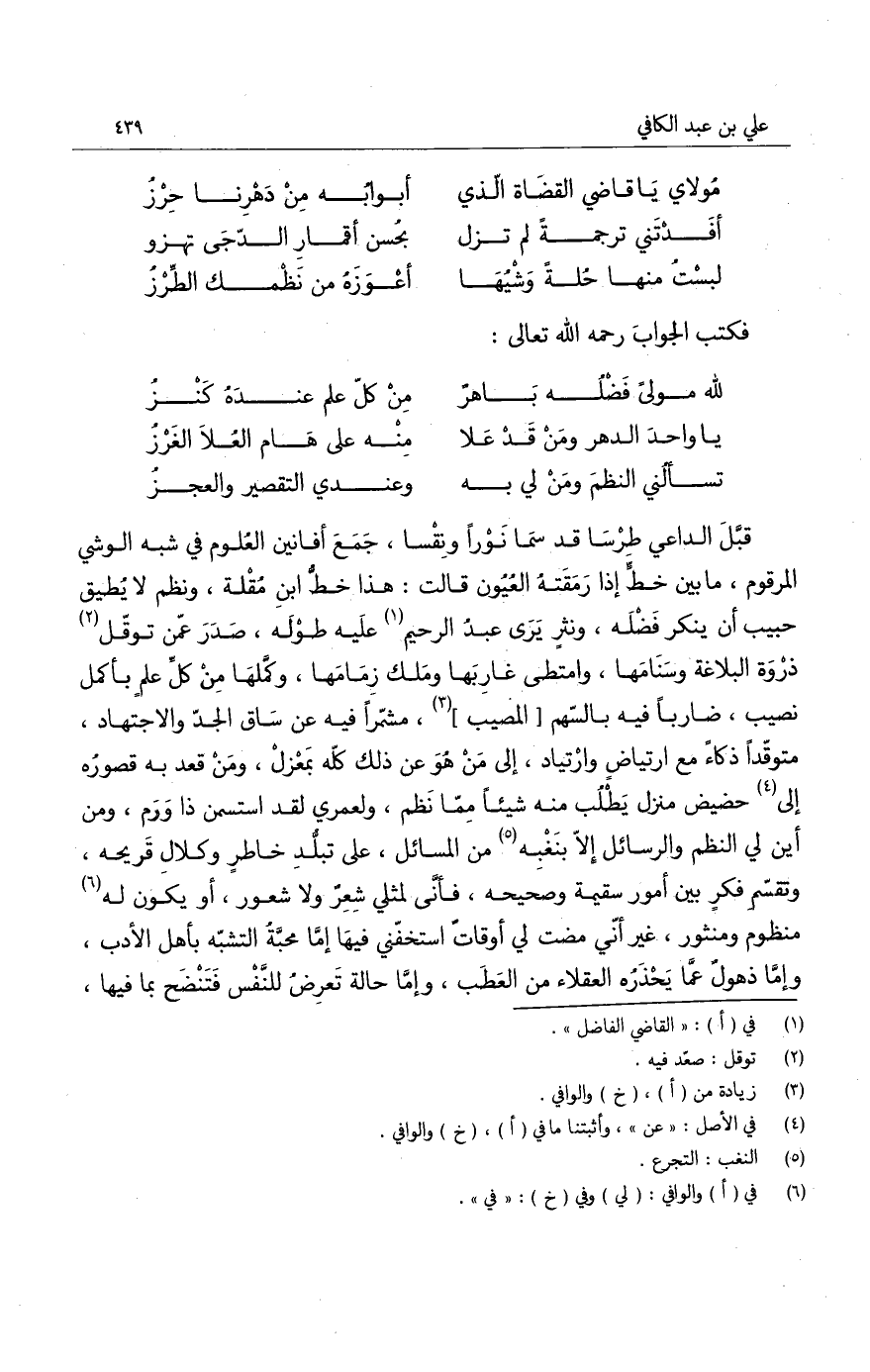 وأقول دعها تبلغ من أمانيها، فنظمت ما يستحيا من ذكره، ويستحق أن يبالغ في ستره، ولكنك أنت الحبيب الذي لا يستر عنه معيب، أذكر لك منه حسبما أشرت نبذاً، وأقطع لك منه فلذاً. وذكر أبياتاً أوردتها في ترجمته في تاريخي الكبير، ونقلت من خطه له وأنشدنيه من لفظه: