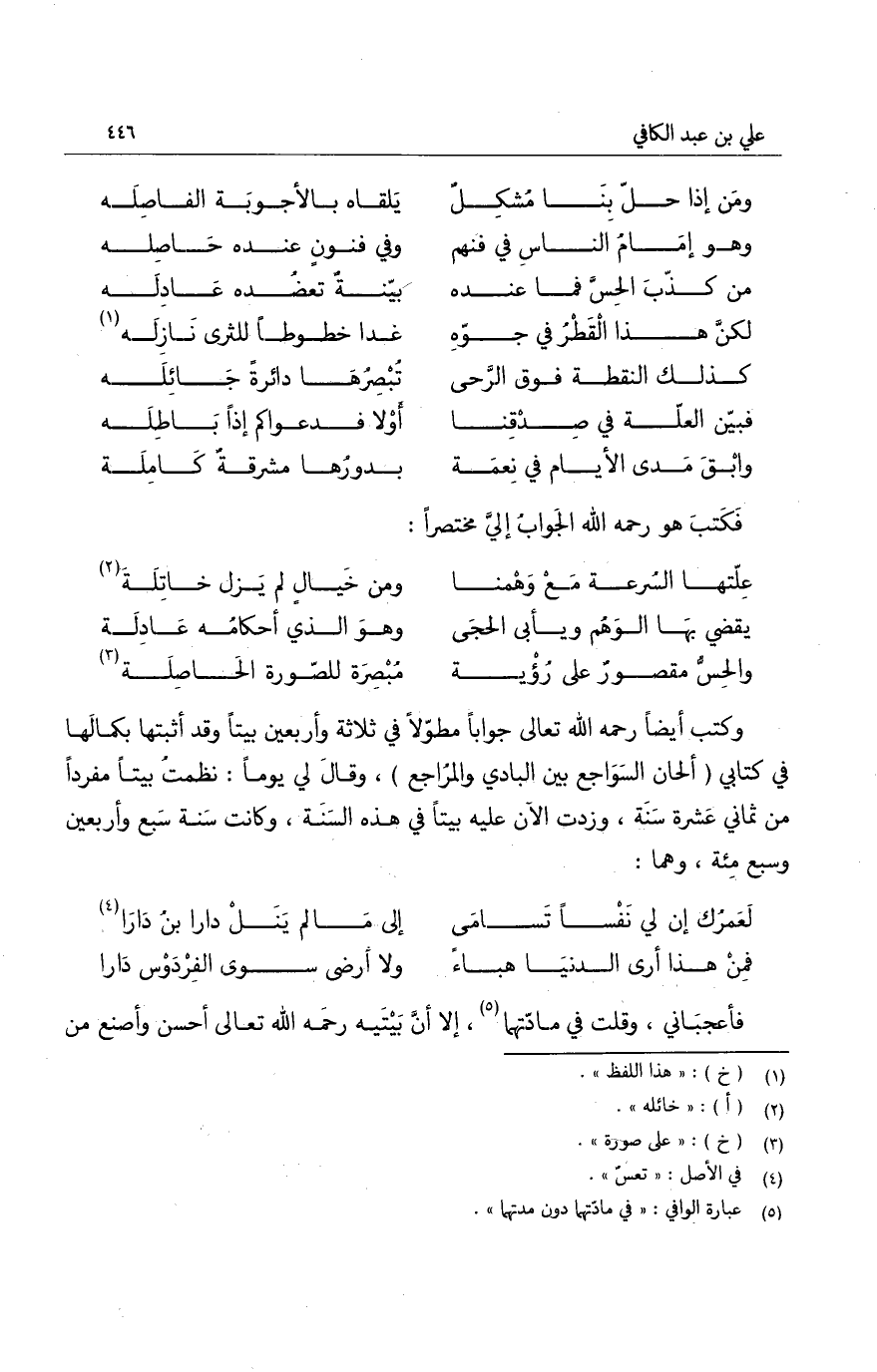 فلما حضرت عنده أراني إياها، فلا وقفت عليها علمت ما أراده من خطأ التورية مع الناظم فمضيت من عنده وعدت إليه وقد كتبت أنا إليه بعد ذلك: