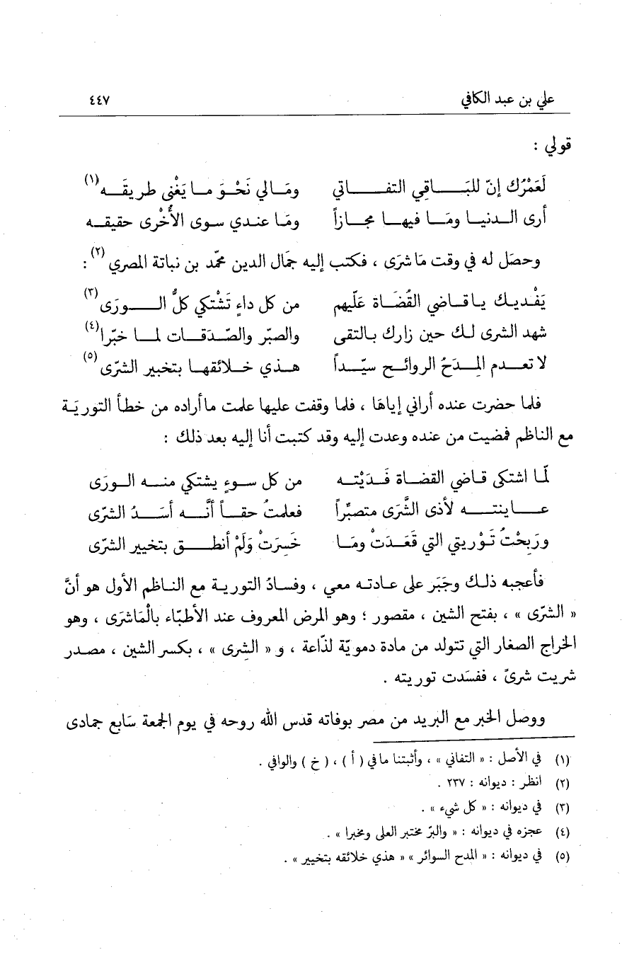 مات من فضل علمه طبق الأر ... مسيراً وما تشكى كلالاً