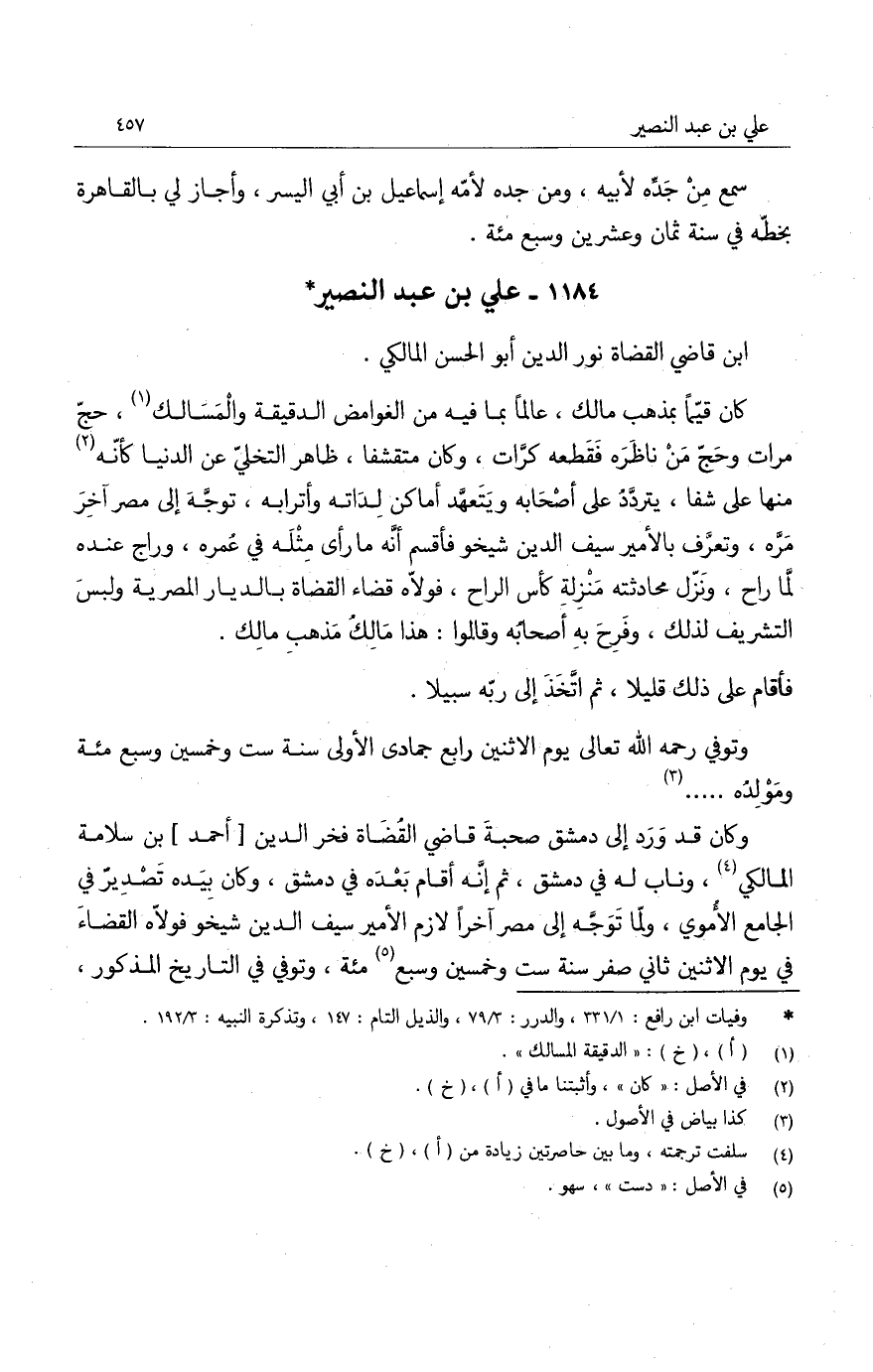 توفي رحمه الله تعالى سنة سبع وتسعين وست مئة. وسيأتي بعده ذكر علاء الدين بن السايق، بالياء آخر الحروف ولكن ذاك علي بن عثمان بن السايق.